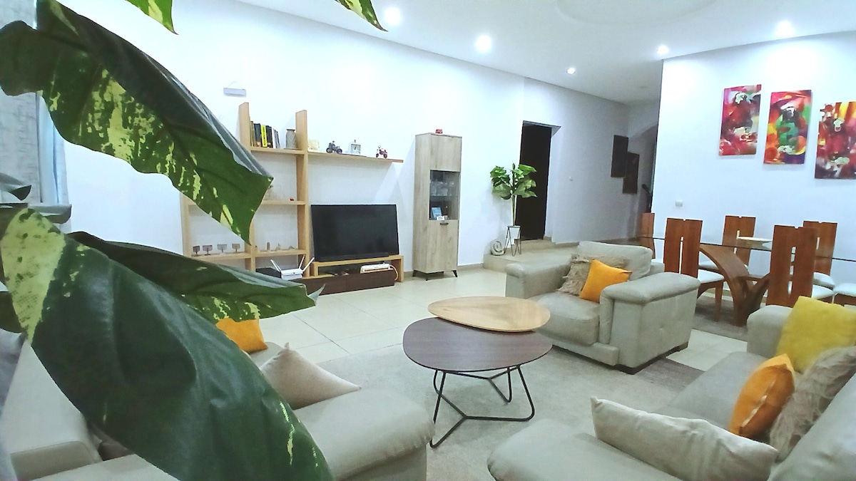 Imaginez la salle de cinéma se déplacer juste dans votre salon! Plus besoin de sortir pour aller en boîte de nuit, le bar avec la sonorisation hors paire est juste devant vous. La résidence Faam est ce qu'on appelerait tout en un. Cadre paisible, spacieux, idéal pour être entre amoureux comme entre amis. Console de jeux PS4,ps5 disponible pour les fanatiques du divertissement. Netflix, youtube, l'internet haut débit font que vous ne pouvez ratez aucune émission. Le paradis dessiné, c'est ici.