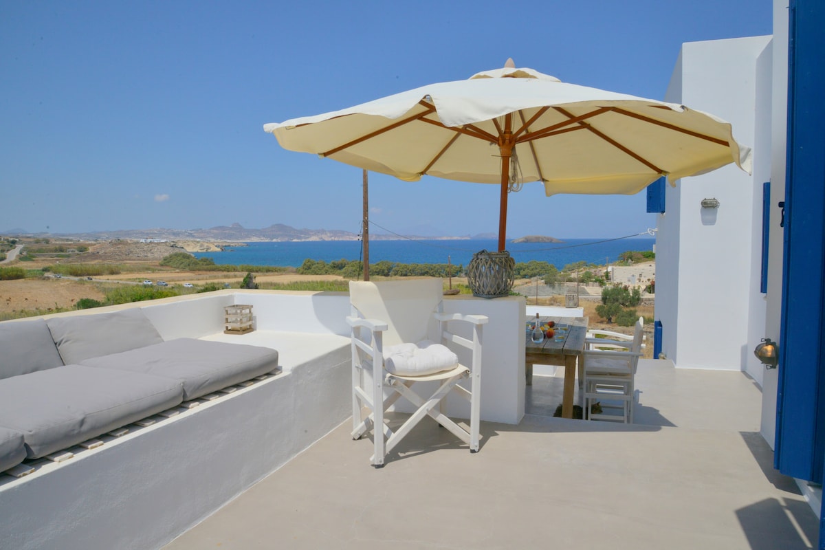 فيلا واسعة مبنية حديثًا، مصممة وفقًا لمعايير الاستدامة العالية مما يؤدي إلى انخفاض البصمة الكربونية. ويتميز بمطبخ مجهز بالكامل وغرفتي نوم مزدوجتين وحمامين ودش خارجي. يتمتع الفناء بإطلالة على البحر دون انقطاع وحمام السباحة الذي يبلغ طوله 7 أمتار خاص ويشرف على ميناء أداماس وغروب الشمس. يوجد موقف سيارات خاص مع شحن سيارة كهربائية. الإفطار اختياري وهو أعلى تقييم ويتم إعداده في البيت من قبل والدة المالك
