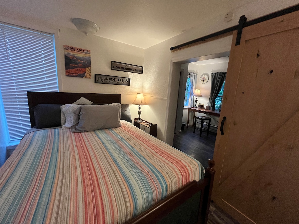 يقع هذا الكوخ الخشبي الصغير المريح في البرية الخضراء في جنوب غرب واشنطن. ستجد نفسك تحتضن نفسك بسلام في الأرجوحة على الشرفة الأمامية، وتستمع إلى زقزقة الطيور، وصياح الصقر ونعيق الضفادع. نحن قريبون من المطار ومحطة أمتراك والفن والثقافة والحدائق ووسط المدينة. ستحب ملاذنا... المساحة الخارجية والسرير المريح والميزات. سيستمتع الأزواج والمغامرون المنفردون والمسافرون بغرض العمل والعائلات على حد سواء بوسائل الراحة في البيت بعيدًا عن البيت!