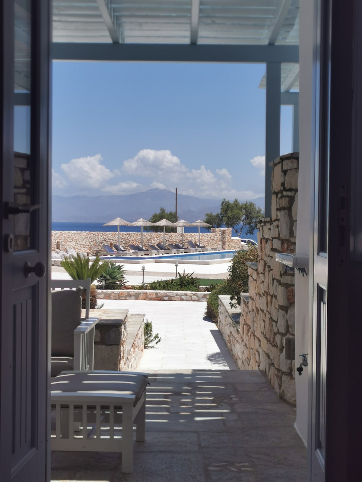 يمكنك الاستمتاع بإطلالة جانبية على البحر، وكما ترى في الصور، فإنه يبعد 15 خطوة عن البحر. وعلى بعد 10 أمتار يوجد مقهى-بار-مطعم صن كيما، حيث يمكنك الاستمتاع بوجبتك التي تريدها خلال النهار أو الكوكتيلات أو الإفطار. بجوار الغرف ستجد نادي فلوسفوس للرياض للرياضات المائية بالإضافة إلى شاطئ رملي جميل مع أسرّة للتشمس. ستجد مسكني على بعد 10-15 دقيقة سيرًا على الأقدام من وسط بلدة ناكسوس (كورا)، و10 دقائق بالسيارة من ميناء كورا و30-40 دقيقة سيرًا على الأقدام مع الأمتويات.