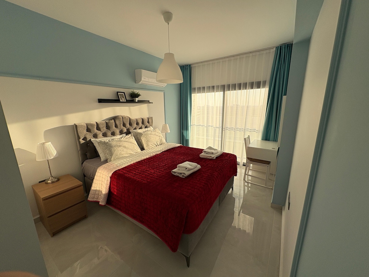استمتع بتجربة السفر في هذه الشقة الجميلة المكونة من غرفة نوم واحدة في أفضل موقع. هذه شقة حديثة مبنية حديثًا في مجمع سكني مع شرفة حيث يمكنك الجلوس والاستمتاع بإطلالات رائعة على البحر الأبيض المتوسط. كل المسكن مكيف بالكامل. يمكنك إيقاف السيارة بسهولة في أماكن وقوف السيارات الخاصة بالشقق. 5 دقائق سيرًا على الأقدام إلى الشواطئ الرملية الجميلة ومدينة الأشباح الفريدة فاروشا (كابالي ماراش). تقع المطاعم والحانات على بعد 4 دقائق، وتقع مدينة فاماغوستا القديمة القديمة على بعد 10 دقائق سيرًا على الأقدام.