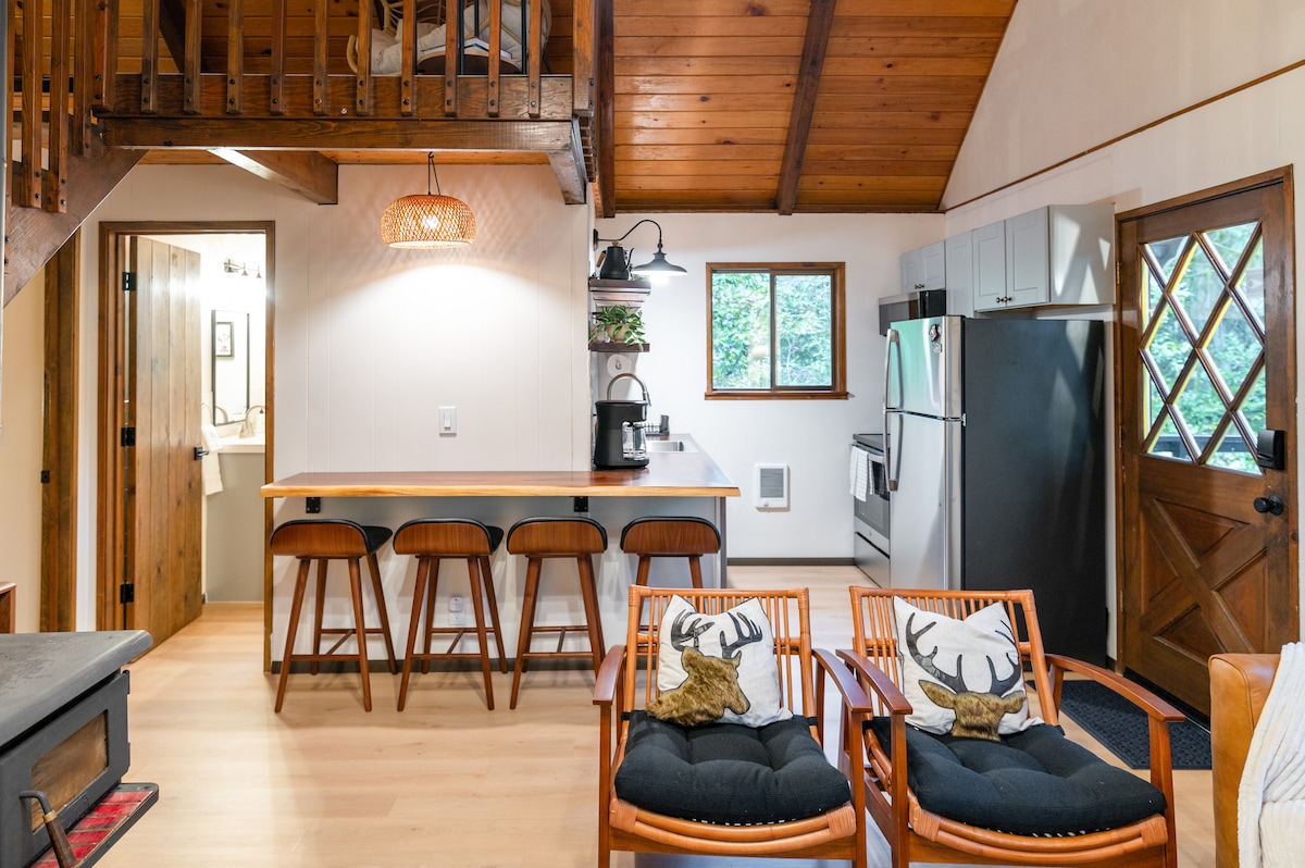 يقع هذا الكوخ المكون من ثلاث غرف نوم وحمامين على بعد ساعة ونصف خارج سياتل وعلى بعد 25 دقيقة فقط من ستيفنز باس، على مساحة فدان واحد من الأرض على حافة نهر سكايكميش في بارينج، واشنطن. مطبخ كبير، وأسرّة مريحة، وألعاب، وشوايات بلاكستون مسطحة وتقليدية، وألعاب للأطفال، وعلى مقربة من أماكن التنزه، وليفنورث، والأنشطة النهرية. بالنسبة لأولئك الذين يتطلعون إلى الذهاب ضد التيار، فإن إيدي هي الوجهة المثالية لقضاء عطلة نهاية أسبوع صيفية كسولة أو رحلة تزلج مليئة بالثلوج.