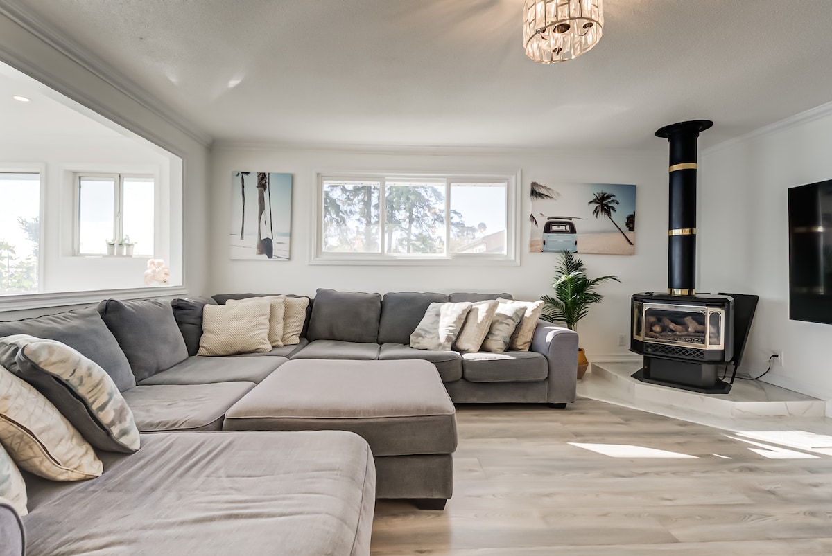 Enjoy this bright and open space that features a master suite with a jacuzzi, cozy family room with a fireplace, and a fully equipped kitchen with modern appliances, and laundry room. Stay entertained with high-speed internet and a smart TV, and take advantage of the spacious deck. Four parking spots available extra spot if needed. Whether you're planning a family vacation, a ski trip, or a peaceful retreat, our home is the perfect place to relax and unwind. Book your stay today!
