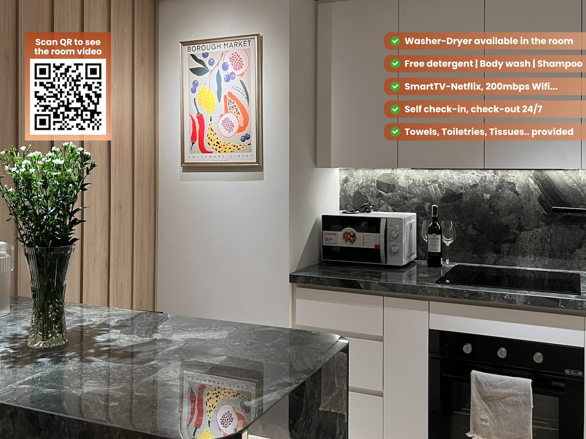 استعد للانبهار بالتصميم الأنيق والمعاصر لشققنا: AHOUSE التي تديرها HongHome. تم تصميم شققنا المنزلية الذكية بدقة لتعزيز نمط حياتك، ودمج أحدث التقنيات بسلاسة في كل جانب من جوانب إقامتك. تتميز كل مساحة بخطوط نظيفة وديكور بسيط وأثاث متميز، مما يضفي عليها جوًا من الرقي. سواء كنت تسترخي في منطقة المعيشة الفسيحة أو تحضر وجبة لذيذة في المطبخ المجهز بالكامل.