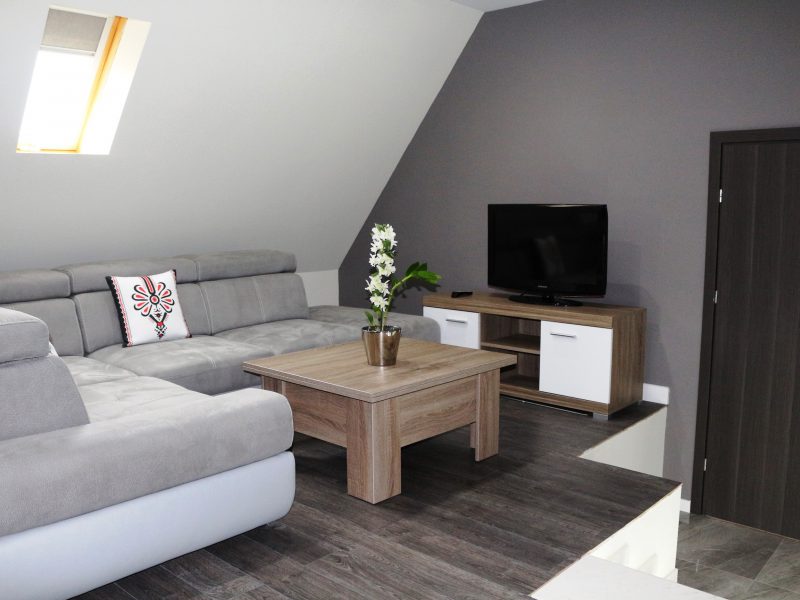 Wakacje w luksusowych warunkach? Oczywiście! Dwupoziomowy apartament z antresolą pełniącą funkcję sypialni spełni te wymagania. Usytuowany na pierwszym piętrze Tater Chaty, posiada osobną łazienkę z podgrzewaną podłogą i w pełni wyposażony aneks.
