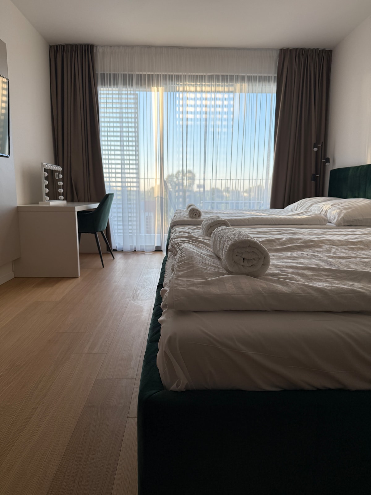مرحبًا بك في سكاي نيست الجميلة، الواقعة في الطابق 22 – برج يوروفيا للمعيشة الفاخرة! هذه الشقة المفروشة بالكامل المكونة من غرفة نوم واحدة هي أطول وأعرق مبنى في سلوفاكيا وتتميز بمناظر غروب الشمس المذهلة كل مساء (مجانًا). أنت في قلب براتيسلافا، مع إمكانية الوصول المباشر إلى مول يوروفيا، مما يعني أن التسوق والطعام والنزهات على الواجهة النهرية هي في الأساس ردهتك الجديدة. هل ترغب في موعد غرامي؟ هل ترغب في تناول وجبة فطور متأخر؟ هل ترغب في التسوق من المنزل؟ نحن هنا لمساعدتك.
