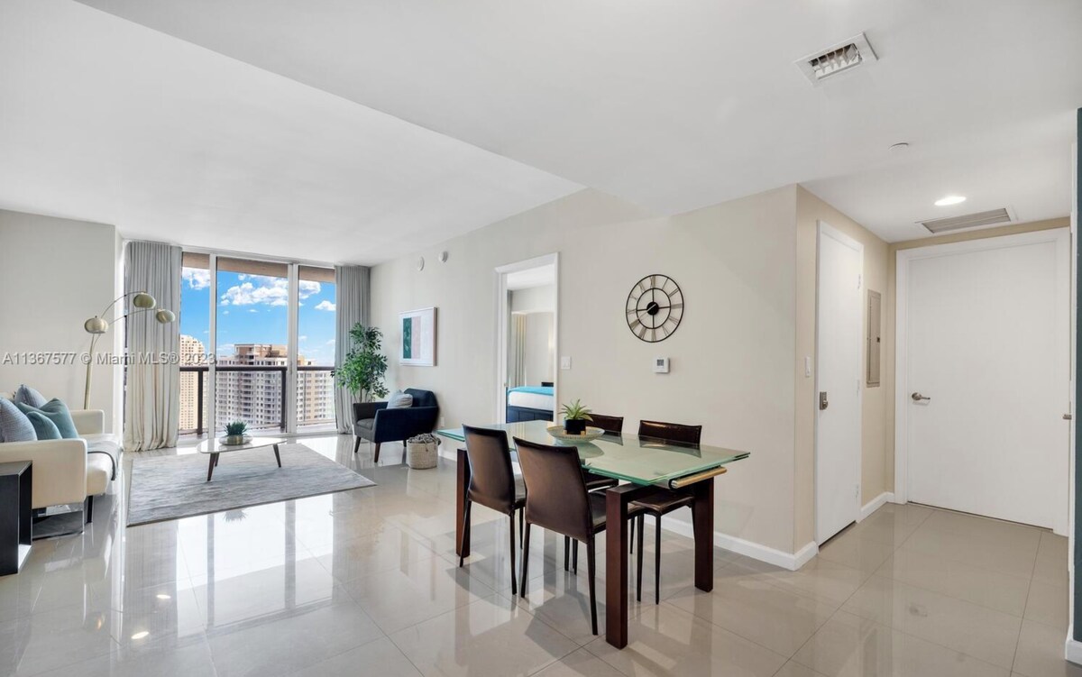 استمتع بالمناظر الخلابة للخليج وأفق المدينة من الطابق 39 في هذه الشقة المفروشة بالكامل المكونة من غرفتي نوم في وسط مدينة ميامي. يمكنك السير على الأقدام إلى بايسايد ماركت بليس وبايفرونت بارك وميناء الرحلات البحرية. حمام سباحة على السطح وصالة ألعاب رياضية وتسجيل وصول ذاتي باستخدام قفل ذكي. على بعد خطوات من المطاعم والحياة الليلية ومتروموفر. مثالية للأزواج أو العائلات أو المجموعات التي تستكشف أفضل أحياء ميامي بما في ذلك بريكيل ووينوود وساوث بيتش.