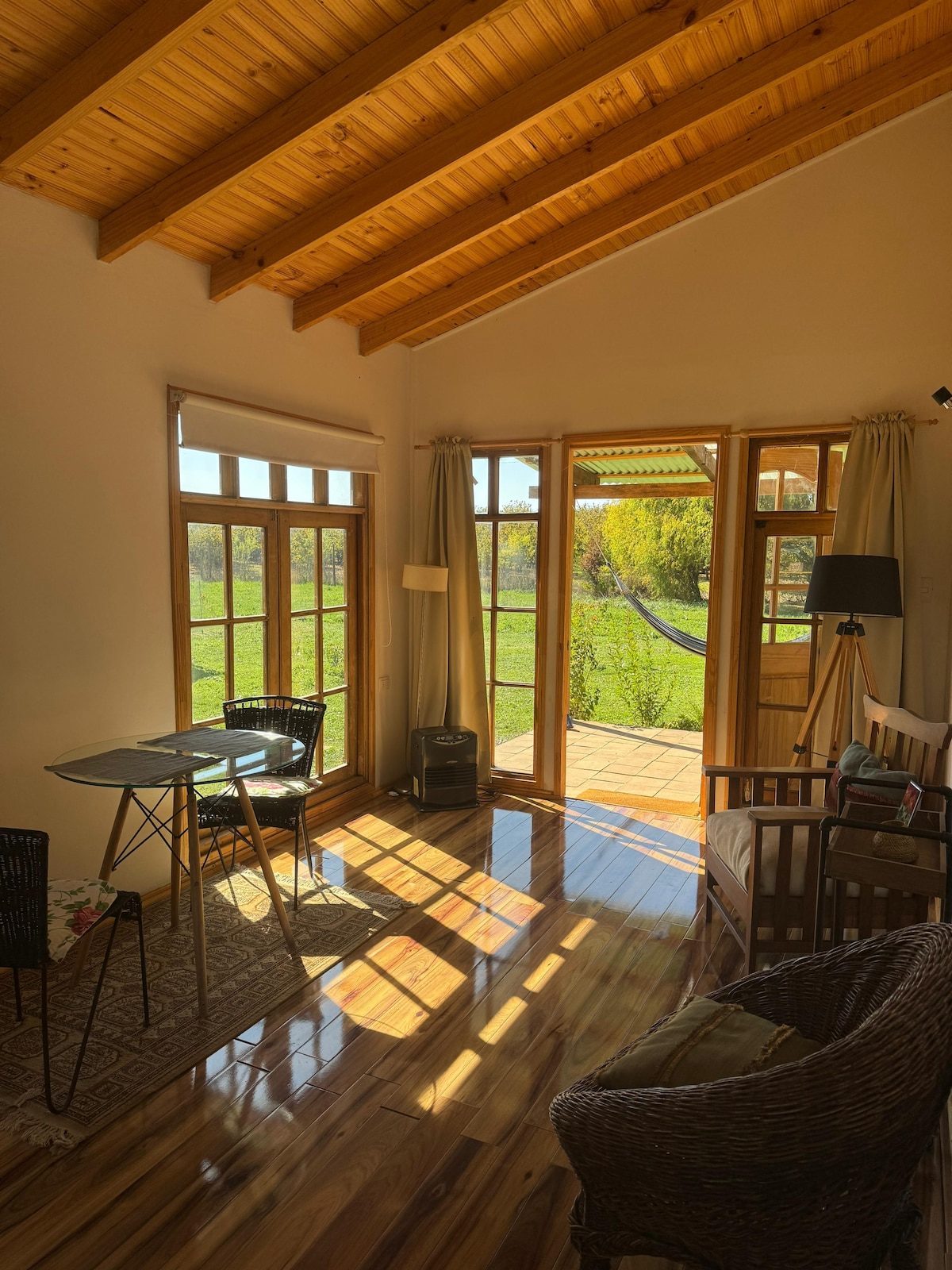 اهرب وأعد الاتصال في مقصورتنا، المثالية للأزواج والعائلات، على مدار العام. يقع في غابة أصلية خصبة بجوار مصب النهر الرئيسي، واستمتع بإطلالات فريدة وراقب اللاما والطيور والعجول والخيول في بيئة طبيعية. استمتع بتجربة سفر أصيلة في قلب تشيلي!