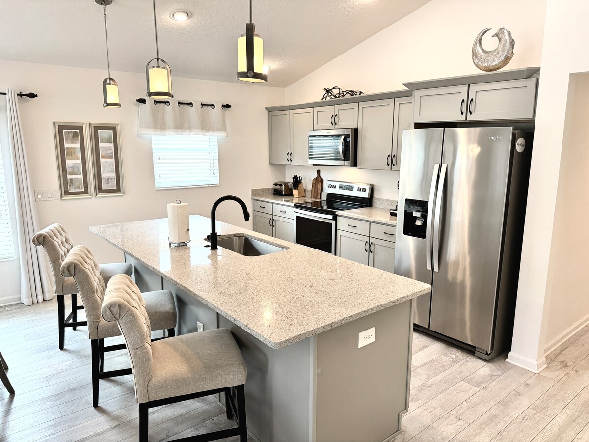 Your NEW home includes a very comfortable KING BED. With its SUPER CLEAN coastal decor, fully equipped kitchen for meal prep, and a whole house NOVA WATER filtration system, you’ll have everything you need for a relaxing and enjoyable stay in The Villages. Find out why The Villages is the fastest growing and largest 55+ community in the WORLD, where visitors of all ages are welcome to play. The fun and sun is only the beginning!!