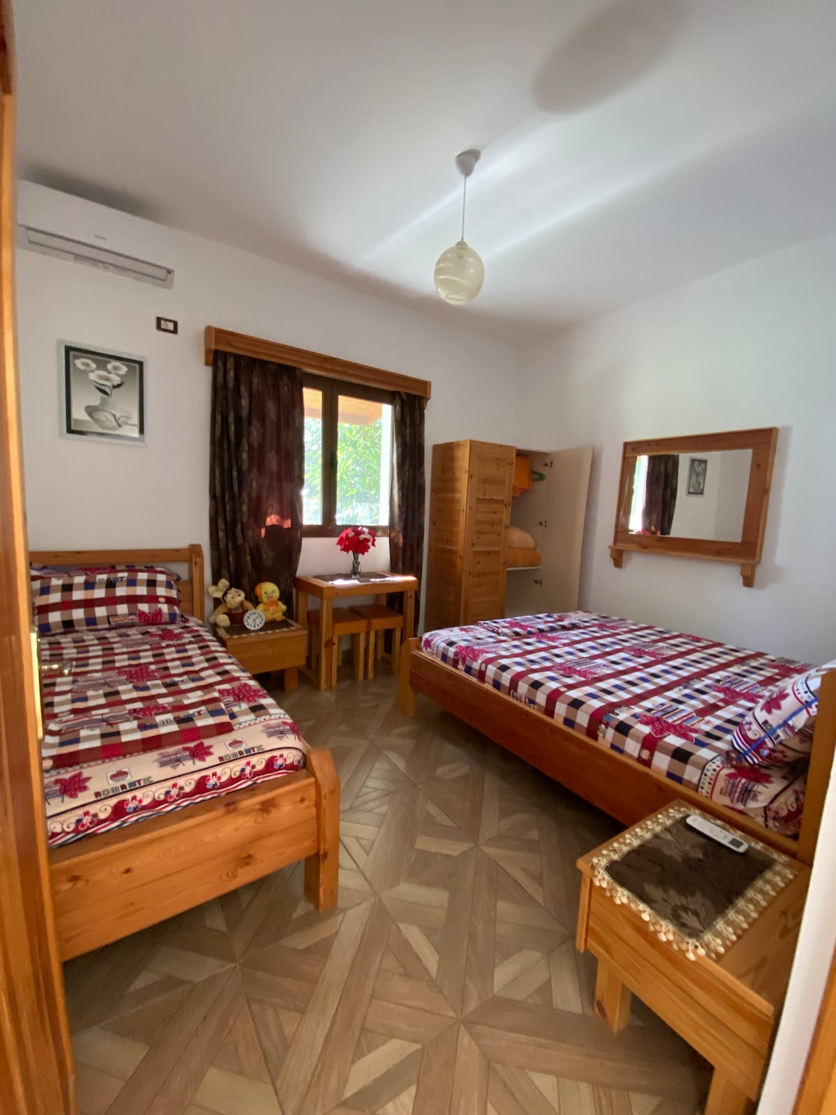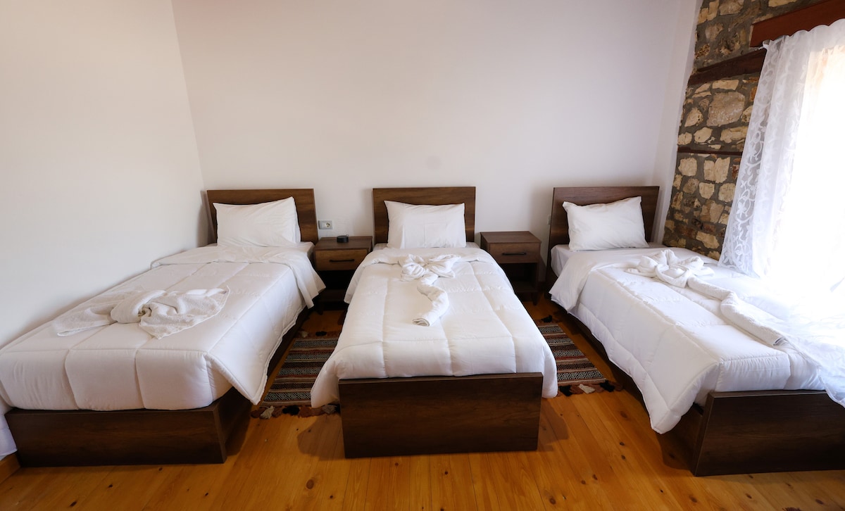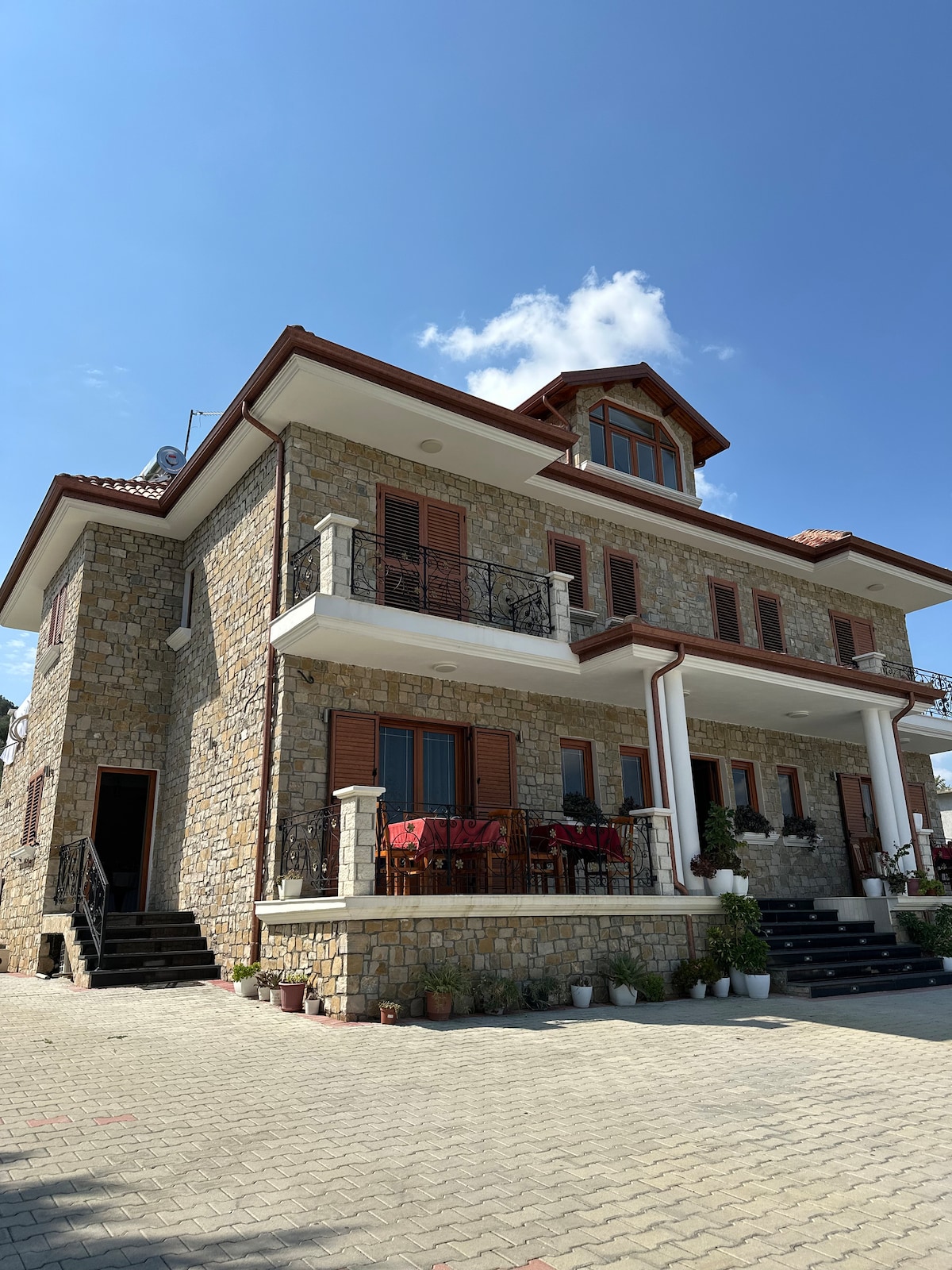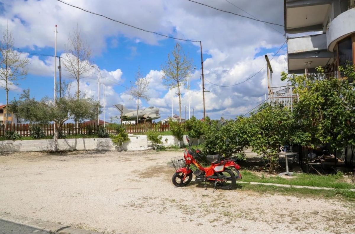 A simple, spacious guest house in Berat, Albania, with a vibrant front garden and a welcoming family, offering cozy accommodations near historical sites, perfect for a peaceful and authentic stay.