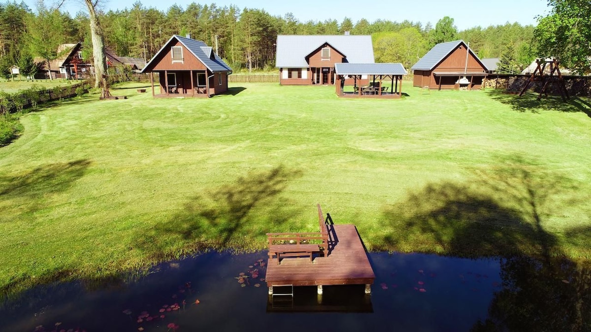 كوخ عصري ومفروش بالكامل ومريح في زاوية رائعة من الطبيعة، محاط بتيار راتنيلي مع إطلالة على الشارع كنيسة بارثولوميو، مثالية لقضاء عطلات قصيرة أو أطول مع العائلة وأقرب الأصدقاء. ساحة منفصلة كبيرة مع حديقة وأسرّة زهور، وملعب للأطفال مع الترامبولين، وتراس خشبي مع شواء سيجعلك تشعر بالراحة والمجانية. وإذا كنت بحاجة إلى أي شيء، فهناك Druskininkai و Raigardas Valley وغابة غربية حقيقية.
