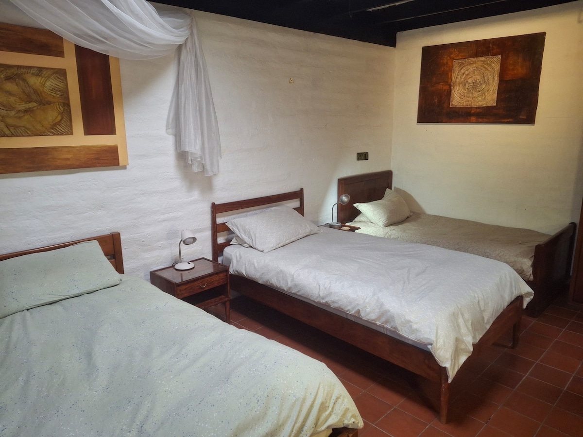 تنفس الهواء الجبلي النقي من تلة بانيسيلو أثناء التأرجح في أرجوحة وسط الزهور والطيور الطنانة. تضفي هذه الأكواخ الأثرية لمسة ساحرة على الحديقة المورقة ، بينما تضفي الأرضيات المبلطة والديكور العصري بالإضافة إلى الأسقف ذات القصب لمسة ساحرة على هذا الكوخ. يوفر موقد حرق الخشب الحديث للأمسيات الباردة مساحة مريحة، حتى أن أنظمة التدفئة ليست شائعة في كيتو. يمنح تصميم الحديقة الفرصة للتفاعل مع ضيوف آخرين في شقتنا، أو للبقاء على انفراد.