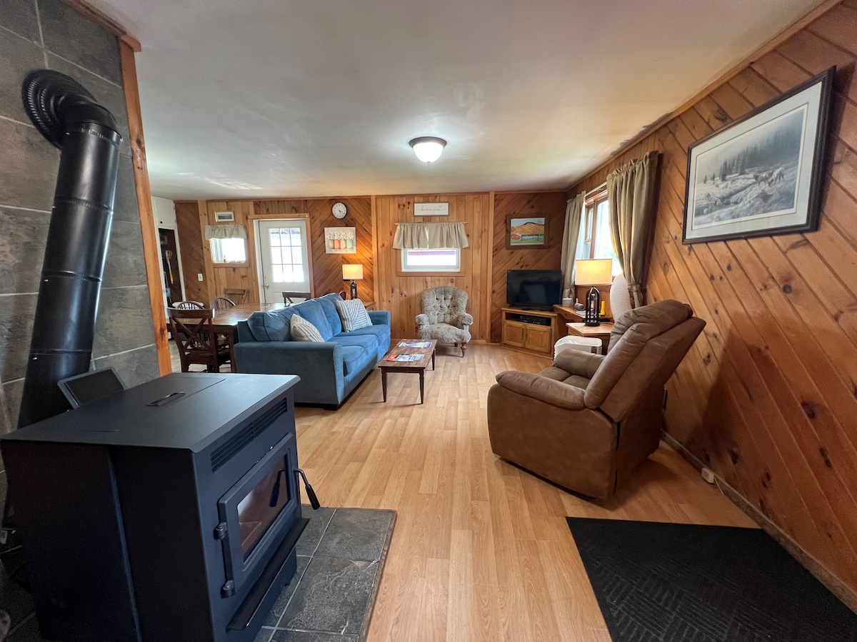 استمتع بغروب الشمس الجميل من كرسي هزاز على شرفة الكوخ الرائعة. يوجد مطبخ كبير ومجهز تجهيزًا جيدًا ومخطط أرضي للمساحات المفتوحة ووحدة استحمام جديدة وخزانة ملابس كبيرة في غرفة النوم. سهولة الوصول إلى مسارات الثلج الشاسعة ، على بعد ساعة بالسيارة إلى 3 مناطق للتزلج (ستو ، سميجلر نوتش وجاي بيك )، X - COUNTRY للتزلج خارج الباب أو في الحرف اليدوية أو ستو. تقع حديقة ولاية إلمور على بعد 3 أميال. يوجد الكثير من مسارات المشي لمسافات طويلة والتجديف بزوارق الكاياك!