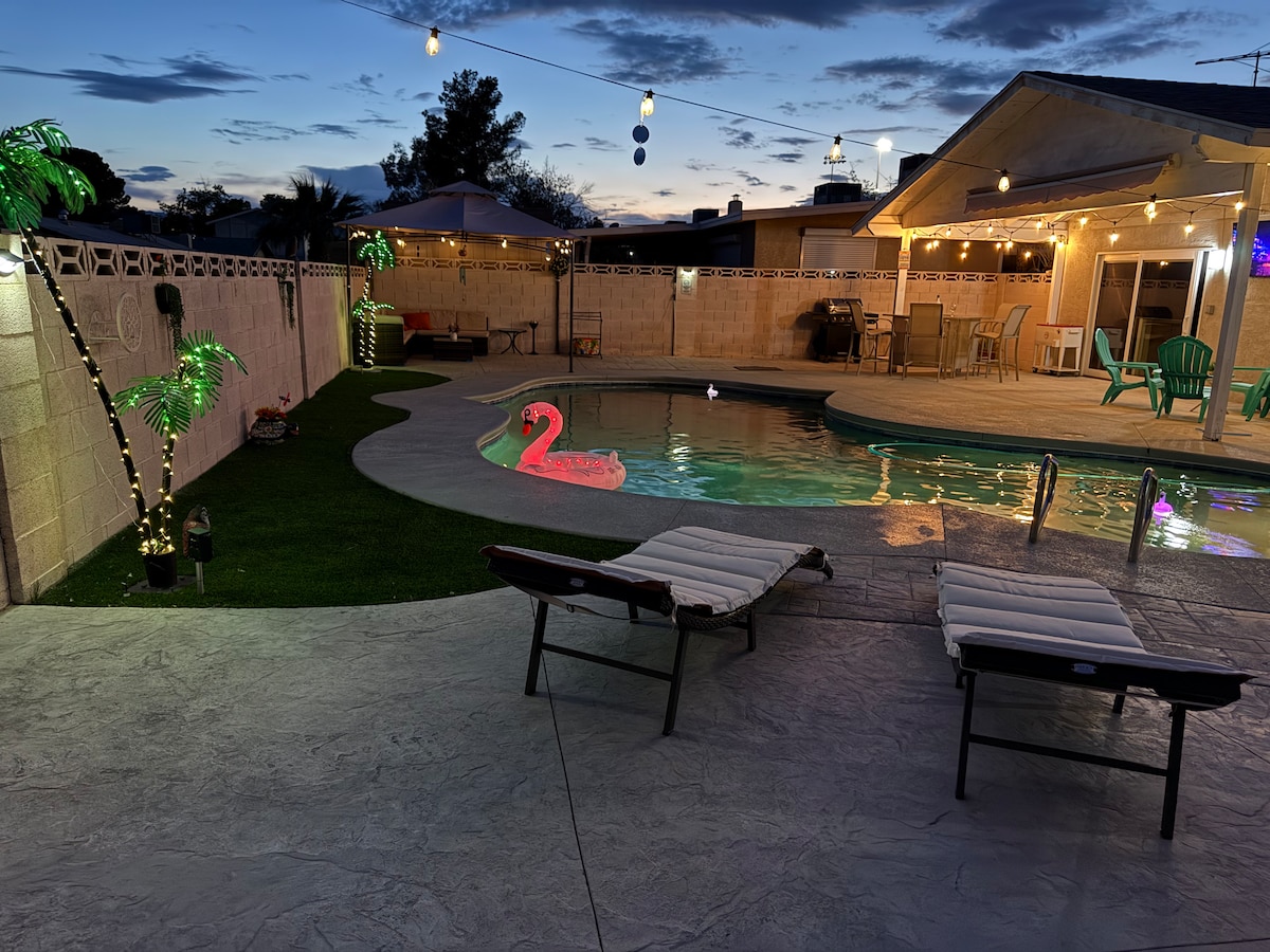 نبذة عن هذا المسكن: يقع في موقع مركزي بالقرب من الشارع (10 دقائق) والمطار (10 دقائق) وهندرسون. مثالي لقضاء عطلة زوجية أو رحلة عمل إلى فيغاس. الوصول إلى منطقة الشواء وحمام السباحة ومنطقة الفناء الخارجي التي تحتوي على مسرح منزلي كامل مع مقاعد مريحة. عائلتنا تستخدم الفناء الخلفي. مراسلة بأي أسئلة يحتوي كاسيتا على غسالة/مجفف تحميل أمامي وموقد مسطح وتلفزيون وآلة ثلج تجارية. يتم تضمين جميع الميزات في كاسيتا. * واي فاي * تلفزيون مع تطبيقات. * قابس 50 أمبير