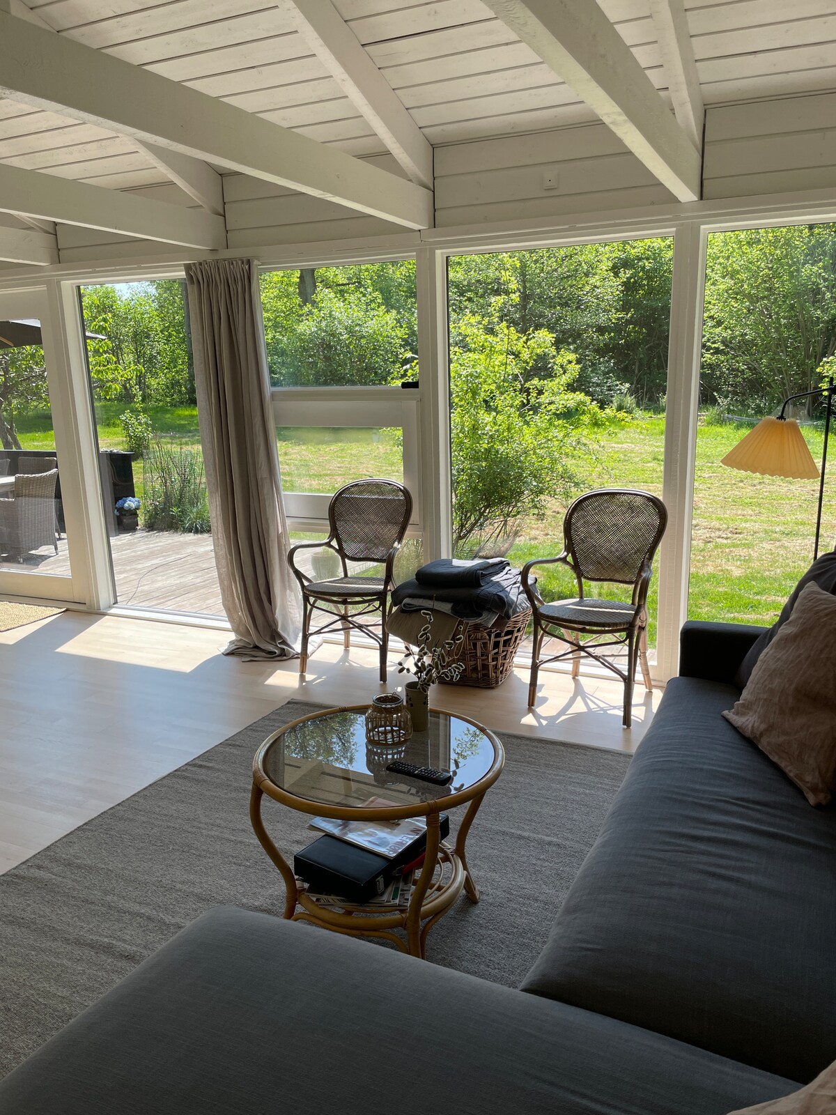 تقع هذه اللؤلؤة الطبيعية شمال هيلسينج في منطقة كونغرن في شمال زيلاند مع إطلالة على الحقول المفتوحة والغابات. هناك 200 متر إلى الغابة حيث توجد فرص جيدة للذهاب إلى صيد الفطر أو مجرد المشي في الطبيعة الجميلة. ومن الشائع جدًا أن ترى حيوانات الغابة تمر خارج النوافذ مباشرة. على سبيل المثال، قد تكون غزلان، غزلان سويدية، وحيوانات التاج. يمكنك شحن سيارتك الكهربائية لدينا. لدينا عداد كهرباء منفصل، لذلك يتم الدفع وفقًا للأسعار اليومية المتوفرة في محطات الشحن العامة الأخرى.