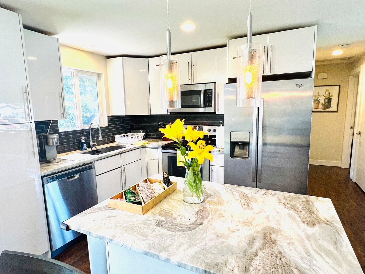 شقة تم تجديدها حديثًا في الطابق العلوي في دوبلكس 1901. مطبخ مجهز بحوض كبير، وميكروويف تحت المنضدة، وثلاجة تحت المنضدة مع صانع ثلج، وفرن مزدوج من جنرال إلكتريك، وماكينة قهوة نسبريسو، وأسطح من الجرانيت. غرفة النوم: سرير نوم مع مرتبة ميموري فوم، وسائد ميموري فوم، خزانة. الحمام: مبلط حديثًا مع حوض استحمام/دش. غرفة المعيشة: أرائك جلدية مرنة من الصلب وتلفزيون إل جي 65 بوصة أو إل إي دي مع مشغل بلو راي/ دي في دي.