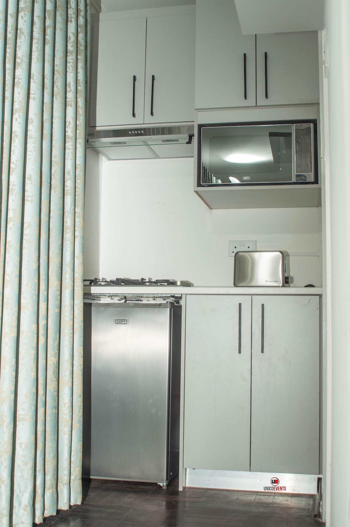 Indulge in our stunning penthouse flat in Bulawayo CBD, a spacious haven of elegance and comfort. Enjoy a beautifully designed one-bedroom suite with a luxurious bed that ensures restful and peaceful nights. Our fully equipped kitchen offers both gas and electric cooking appliances, a microwave, and a washing machine, along with filtered drinking water for your convenience. Relax in the stylish living space complete with a smart TV and high-speed Starlink internet for seamless entertainment.