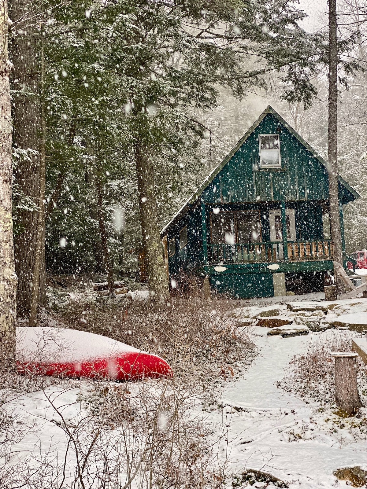 مرحبًا بك في كوخنا المريح المكون من 3 غرف نوم، والذي يقع في قلب نورث كونواي. تم بناء هذا الإطار على شكل حرف A في الأصل من قبل أجدادنا في الستينيات، وهو بمثابة قاعدة منزلية مثالية للمغامرة واستكشاف كل ما تقدمه الجبال البيضاء؛ التزلج، المشي على الجليد، ركوب الثلوج، المشي، ركوب الدراجات، مصانع الجعة، تناول الطعام، تعويم ساكو، إلقاء نظرة خاطفة على الأوراق وما شابه ذلك!