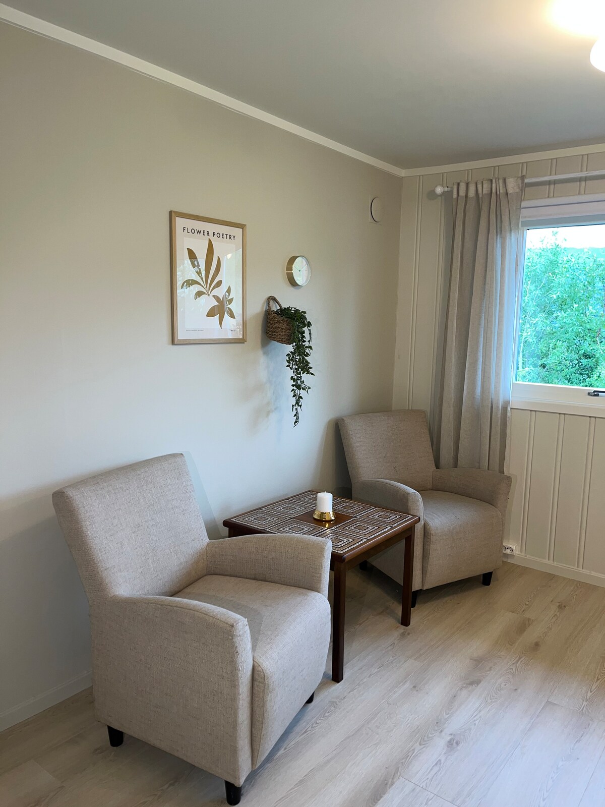 تتكون الشقة من غرفة معيشة/مطبخ في مخطط مفتوح، وغرفة نوم، بالإضافة إلى حمام. تتكون غرفة النوم من سريرين مريحين موضوعين معًا كسرير مزدوج بطول 180 سم. يوجد في غرفة المعيشة سرير أريكة مع مساحة لشخص واحد، 120 سم. تقع الشقة في حي لطيف وهادئ للغاية، مع إطلالات مذهلة على ستراندفيوردن. فرص رائعة للمشي لمسافات طويلة القريبة. مضيف لطيف، يعتني جيدًا بضيوفه