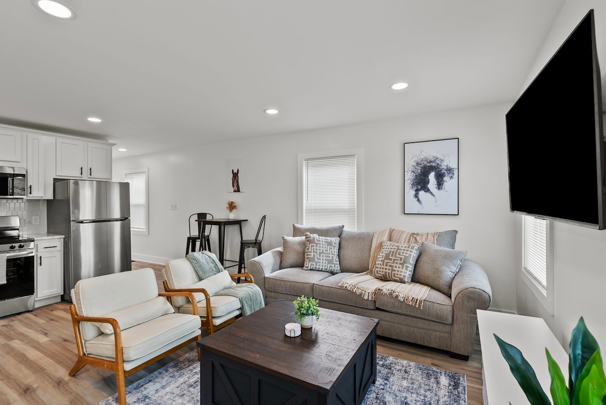 كريكسايد هايدواي هو بيتك بعيدًا عن البيت. يقع في بلد الخيول الريفية، تعال للاستمتاع بإقامة مريحة مع العائلة بأكملها. احجز هذا الطابق السفلي الكامل الذي تبلغ مساحته 1100 قدم مربع، وغرفة نوم واحدة، وحمام واحد في جورجتاون للإيجار لقضاء العطلات! (هذا ليس بيتًا كاملاً.) تجول في مزارع النخبة الأصيلة، أو قم برحلة على درب بوربون، أو قم بزيارة حديقة خيول كنتاكي، أو استمتع بيوم في السباقات خلال كينلاند التاريخية (أبريل وأكتوبر)، أو قم بالقيادة لمسافة أبعد قليلاً إلى تشرشل داونز أو آرك إنكونتر.