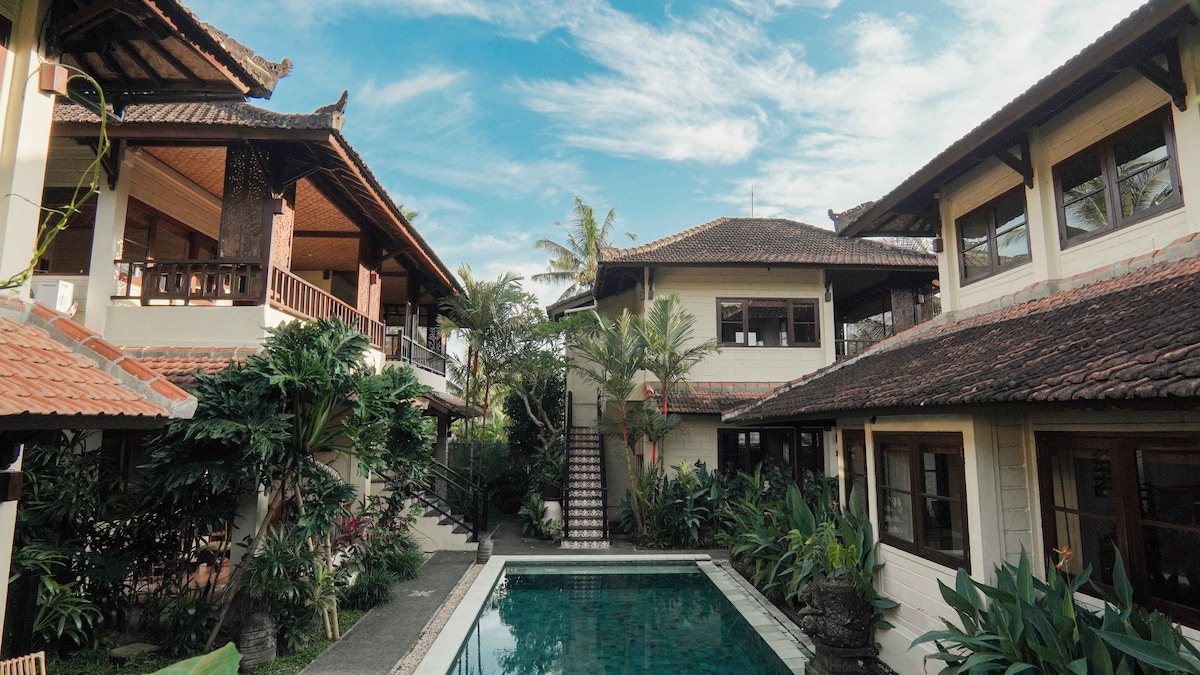 إنه مكان إقامة أنيق يجمع بين الشعور المعاصر والتقاليد البالية. بنيت في وسط تراسات الأرز المترامية الأطراف، ونحن نقدم ملاذ جزيرة استوائية في حين أننا مجرد قفزة، تخطي وقفزة (على ما يرام، غرامة، نعني ركوب 15 دقيقة) إلى مركز أوبود مع أسواق الفن التقليدية الشهيرة. تحولت من السياحة الجماعية في بالي ، وهو السفر عبر الزمن إلى الوراء عندما كان الناس في بالي يكسبون رزقهم من الزراعة وكانت أوقات التوقف تنفق بشكل جيد في صنع الفنون والحرف اليدوية.