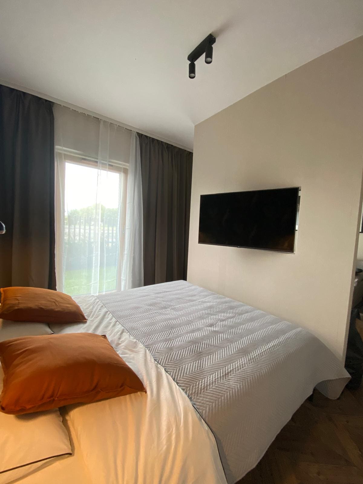 شقة فريدة من نوعها بغرفتي نوم بتصميم فريد، تقع في جزء مرموق للغاية من المدينة القديمة، في استثمار برابانك. في مبنى مركز المنتجع الصحي مع منطقة ساونا (مدفوعة بالإضافة إلى ذلك) مع صالة ألعاب رياضية (مجانًا) ومركز ترفيهي مع البلياردو ومنطقة إعلامية (مجانًا) يوجد في غرفة النوم سرير مزدوج كبير وخزانة ملابس وخزانة ملابس وفي غرفة المعيشة وسرير أريكة مريح ومطبخ صغير مجهز عمليًا. حمام بدش وغسالة ملابس.
