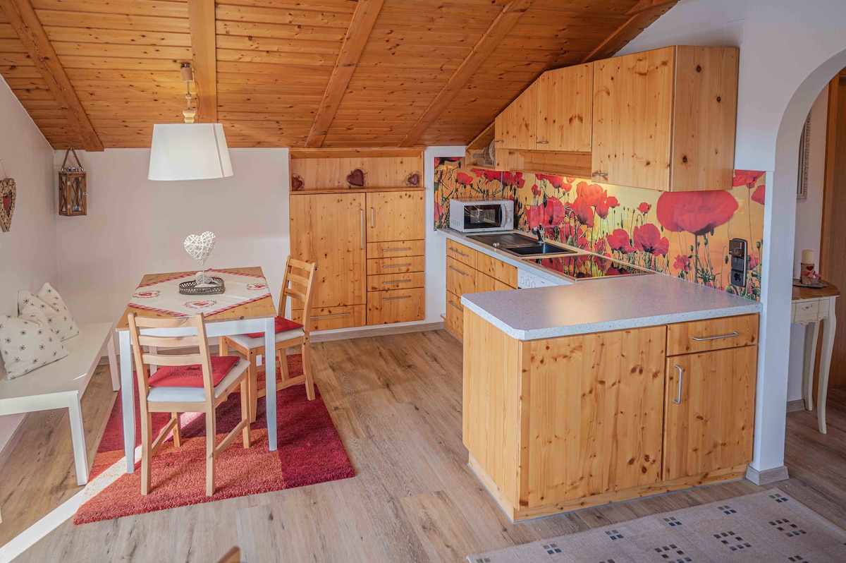 🌄 الوصول. تنفس بعمق. اشعر وكأنك في بيتك. يغمرك الشعور بالاسترخاء منذ لحظة وصولك. يجعل هواء الجبل المنعش والهدوء المطلق والمناظر الخلابة لبحيرة فايسينزيه وجبال الألب من هذه الشقة ملاذًا حقيقيًا. تقع شقتنا المفروشة بمحبة على حافة جبال الألب بالقرب من فوسن وهي مثالية للأزواج أو العائلات الصغيرة التي ترغب في قضاء أيام مريحة وسط الطبيعة – في أي وقت من السنة.