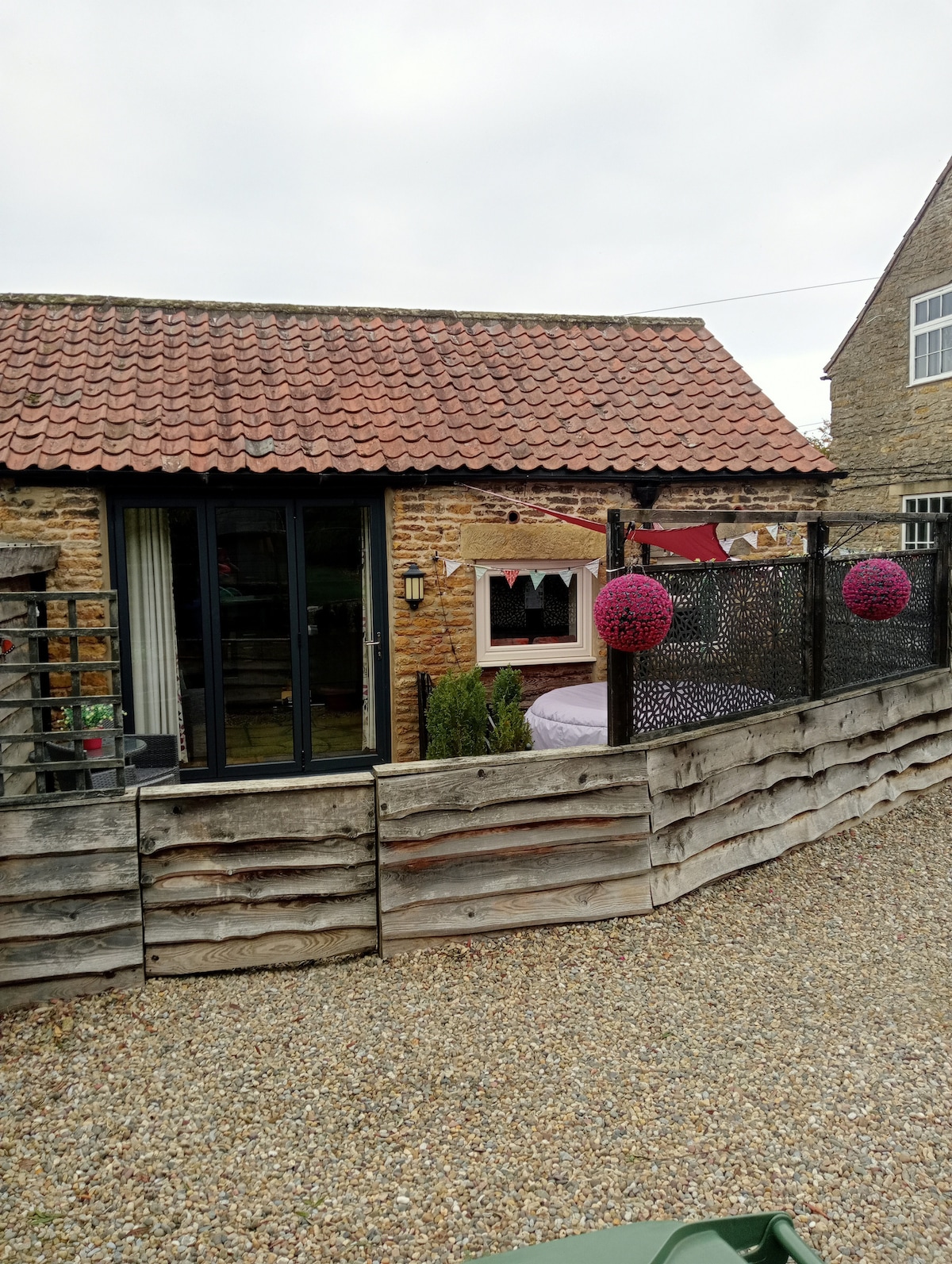 كوخ بغرفة نوم واحدة مناسب للكلاب. (بدون رسوم للكلاب) مع حوض استحمام ساخن. حديقة كبيرة محاطة بسياج بالكامل وملائمة للكلاب. تقع في قرية روستون الريفية الجميلة، شمال يوركشاير. موقف سيارات للضيوف، فناء مغلق خاص مع فناء وحوض استحمام ساخن. أبواب ثنائية الطي تؤدي إلى صالة مجهزة تجهيزًا جيدًا ومطعم ومطبخ عصري مجهز بالكامل. غرفة نوم مع سرير كبير، ومساحة للتعليق، ومرآة كاملة الطول وتلفزيون يؤدي إلى غرفة الاستحمام مع مقبس ماكينة حلاقة. تتوفر مآخذ USB