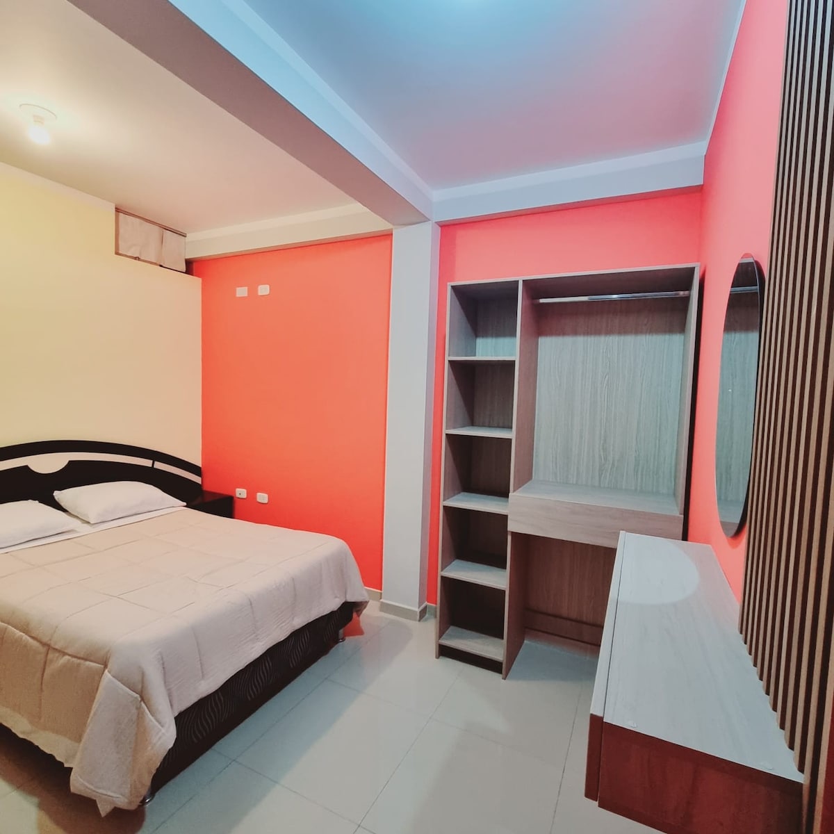 Un lugar relajante a 10 minutos del centro ubicado en zona residencial con seguridad, cuenta con 2 habitaciones cama 2 plazas y 2 camas plaza y media 1 baño con therma, sala comedor con cómodos y modernos muebles con sofá cama televisores de 44" y 36" zona de lavandería con lavadora, cochera privada, cocina equipada con microondas refrigeradora de dos puertas olla arrocera, cafetera y menaje Parrilla y zona de terraza Cuenta con wifi Ideal para 04 personas sujeto a variación del cliente