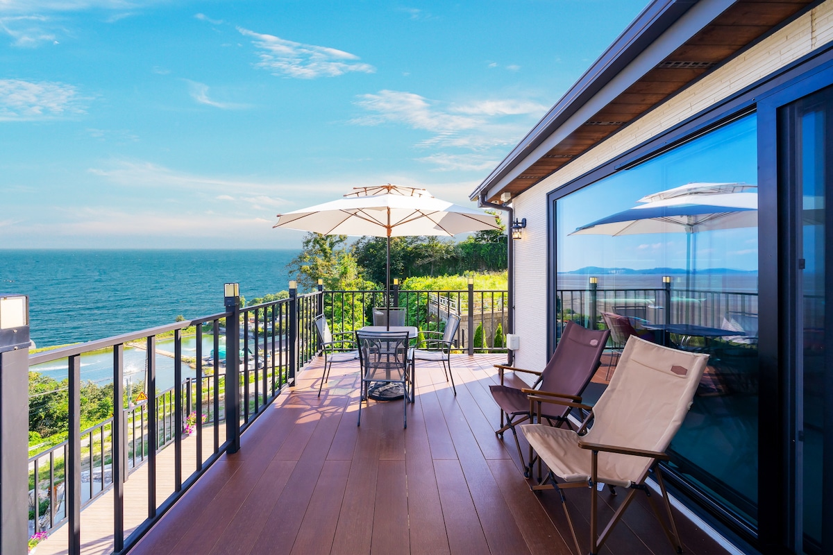 푸른 나무들과 바다를 담은 자연 속에서 멋진 추억을 만들 수 있는 숙소의