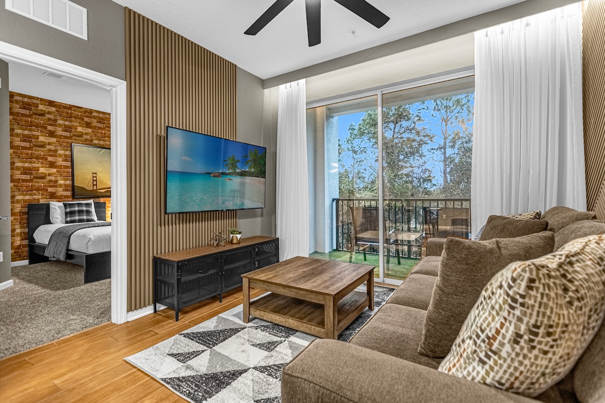 إطلالات جميلة على البحيرة وديزني. أنيقة بغرفتي نوم