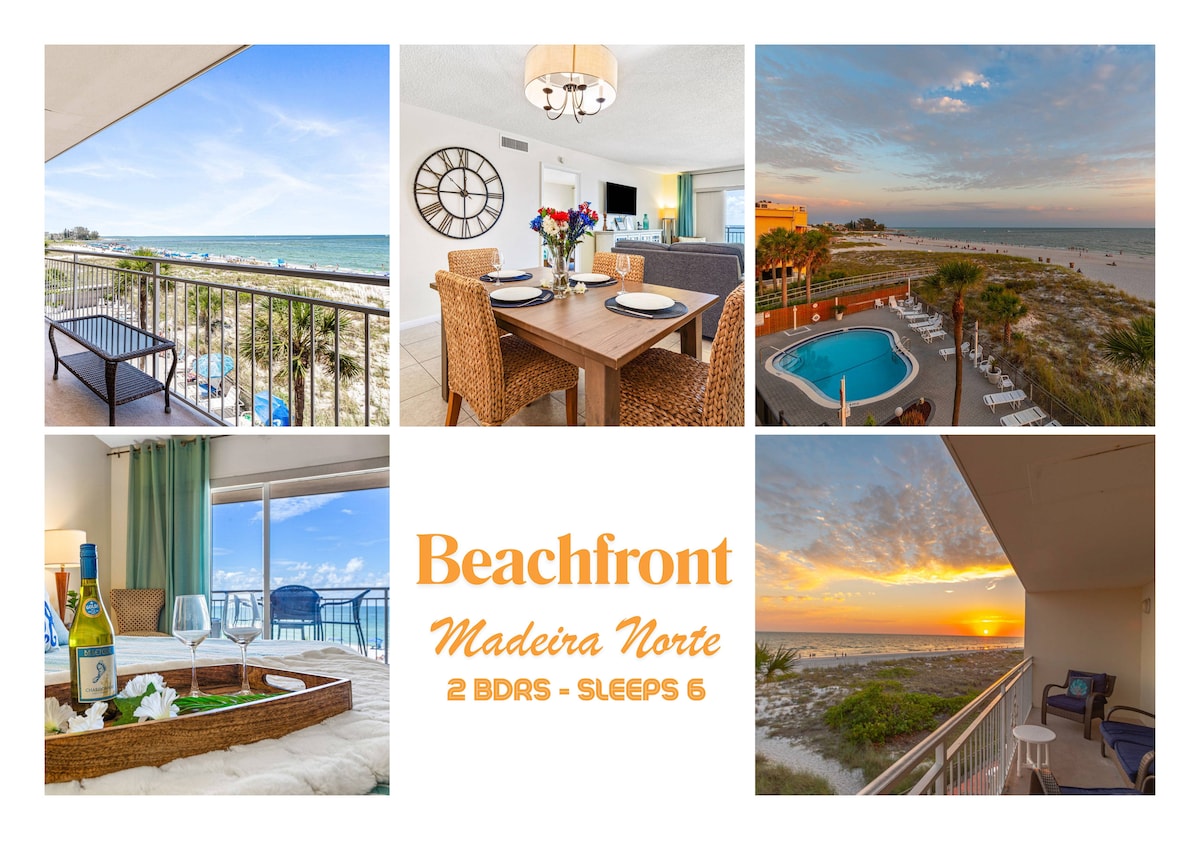 شقة جديدة تم تجديدها بالكامل على شاطئ البحر الخلاب على شاطئ خاص. مسافة سير على الأقدام إلى الحانات والمطاعم والموسيقى الحية والمزيد! سرير بحجم كينج جديد تمامًا، وواي فاي عالي السرعة، وأجهزة تلفزيون ذكية مع كابل/نتفليكس، وحمام سباحة ساخن، وباربيكيو/شوايات، وطاولات خارجية، ودش، وشرفة على شاطئ البحر، ومساحة عمل وأنت على الشاطئ مباشرة! على بعد مسافة قصيرة بالسيارة من مطاري تامبا/بيز، وسط مدينة سانت بيت، متحف دالي والمزيد! تم تجهيز الشقة بالكامل بكل ما تحتاجه ويديرها مضيف متميز لقضاء عطلة شاطئية مثالية!