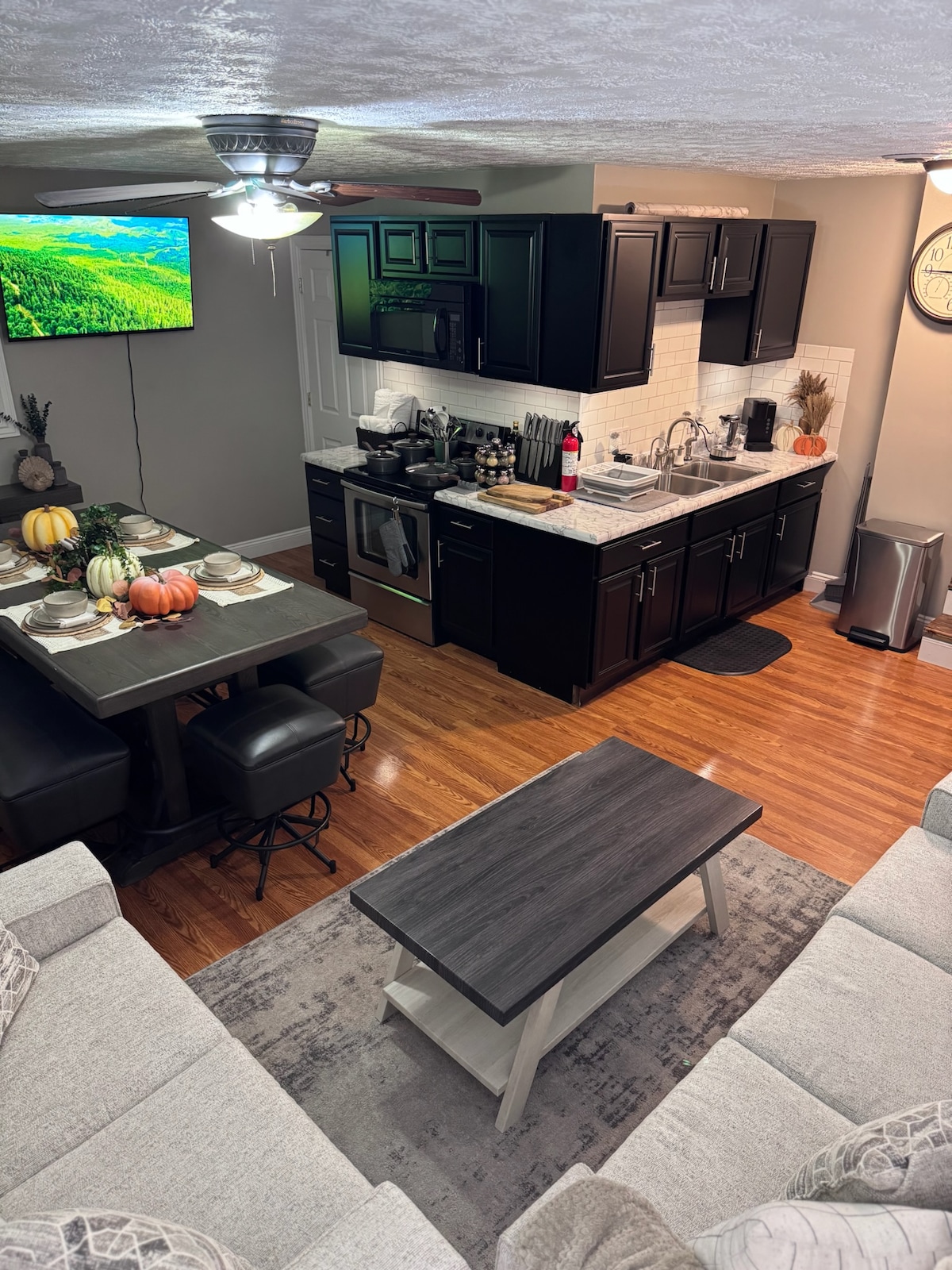 تبلغ مساحة هذه الشقة السفلية 750 قدمًا مربعًا ومطبخ كامل وغرفة معيشة/غرفة نوم منفصلة ومدخل جانبي خاص. تشمل غسالة صحون وغسالة/مجفف وفرن غاز وثلاجة كاملة الحجم وسرير متوسط الحجم مع مرتبة ميموري فوم ومكتب كبير وواي فاي. يقع بيت عام 1925 في حي تاريخي وعلى بعد 10 دقائق سيرًا على الأقدام من بوردو وماكي أرينا وهابي هولو بارك. تعيش المالكة (زوي) في البيت الرئيسي مع شريكها ديفيد (أحيانًا)، وجروها الذهبي فورست، وابنتها البالغة الشابة سوفي.