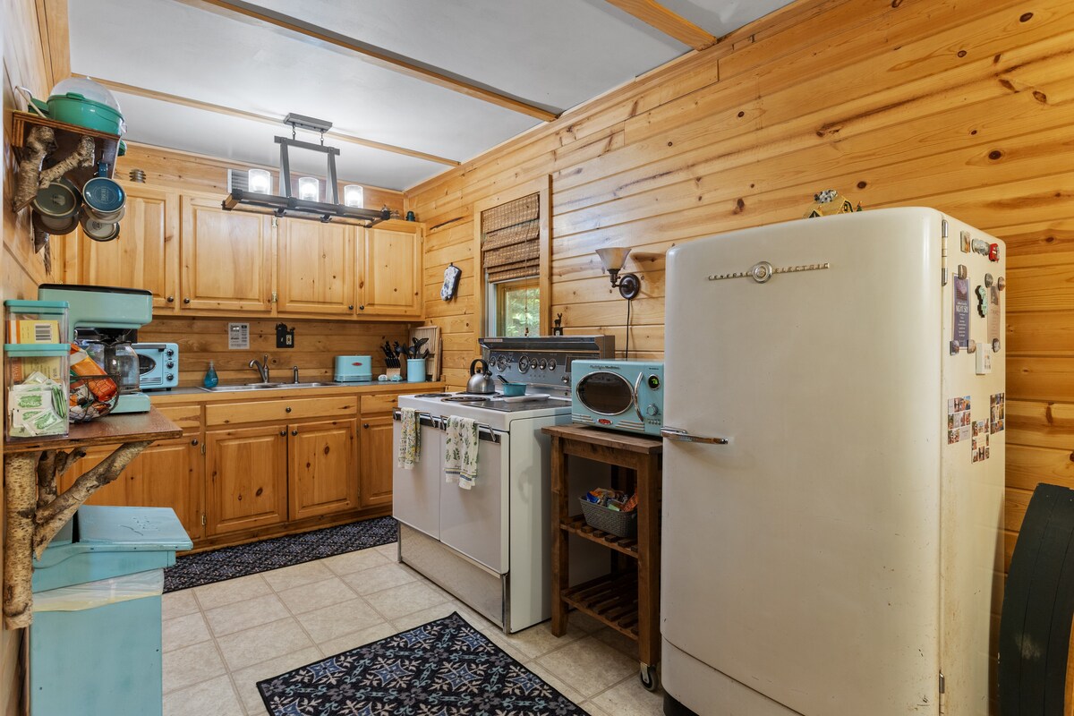 إذا كنت تبحث عن عطلة مريحة ودافئة، فقد تم تحديث بيتنا الخشبي العتيق المكون من غرفتي نوم في الخمسينيات مؤخرًا مع جميع وسائل الراحة في البيت. يتميز بأرضيات خشبية صلبة وسقوف كاتدرائية ومفروش بمزيج مريح من القديم والجديد ومدفأة كهربائية وأجهزة جديدة وحمام معاد تشكيله مع دش كبير. يقع بيتنا على بعد بضعة مبانٍ من وسط مدينة كلير حيث ستجد متاجر محلية فريدة ومطاعم وترفيه.