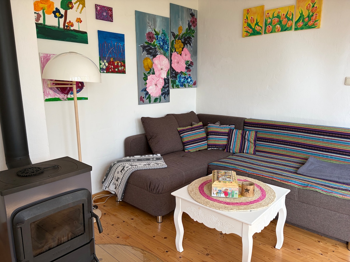 الشقة مع إطلالة رائعة تغطي كامل السطح من منزلي. وهي تقع في مكان هادئ في لامسبرينج مباشرة على حافة الغابة وقد تم تجديدها بالكامل. يمكن الوصول إليها عبر المدخل الرئيسي عبر يمكن الوصول إلى الدرج. مكان هادئ بالقرب من الطبيعة. تحتوي غرفة النوم على سرير مزدوج كبير ومريح (1.80 × 2.00 م) وهناك أريكة للنوم. واي فاي، تلفزيون، راديو متاح، الشقة مجهزة تجهيزًا جيدًا. شرفة خارجية صغيرة.