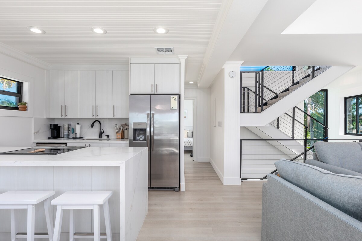 أنت لا تأتي إلى الجزر للإقامة في بلدة - أنت تأتي للإبطاء. مرحبًا بكم في بيتنا الاستوائي على شاطئ كيز، بعيدًا عن حركة المرور والضوضاء في الطريق السريع الأمريكي رقم 1. تأمل أشجار النخيل على السطح الملتف، واستمتع بإطلالات بانورامية واسعة على الخليج، وشاهد مناظر غروب الشمس النارية مباشرة من سطحك. أشعل النار في الشواء، أو قم بتحضير مشروب كوريج، أو اطفو في حمام السباحة الخاص، أو ارمِ خطًا من الرصيف/المرفأ الخاص الذي يبلغ طوله 300 قدم. عيش في الجزيرة بسهولة مع نسائم المحيط / الخليج، وأسرّة مريحة، وبياضات عالية الجودة، وخدمة واي فاي، وتلفزيون كابل.
