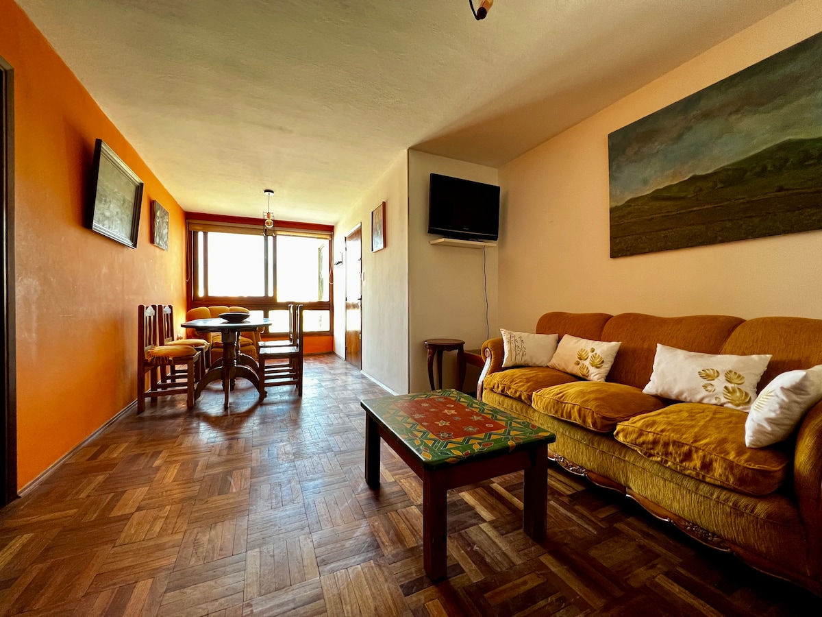 Apto ubicado en el corazón del barrio cordón. A pasos de la facultad de Derecho y de 18 de julio. Dos habitaciones una con cama king size y mini vestidor y otra con cama marinera. Living comedor con cocina integrada y aire acondicionado solo en sala de estar. Vista despejada desde el noveno piso con terraza privada al frente. El edificio cuenta con parrilla y lavadero de uso comunitario. TV 43 pulgadas con direct tv en el living. Apto luminoso y con excelente ventilación.