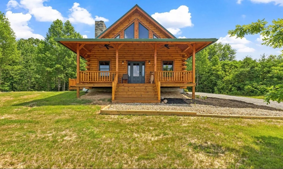 Our cabin is truly a quiet place in the country to 'catch your breath' and relax in the beauty of God's creation. There are trails over 32 acres of rolling hills and woods where you may sneak up on deer and other wildlife. Comfortable for four. Fire ring/grill and firewood. Porch with table and 2 chairs to have your coffee. Deck with gas grill, 4 chairs, table. 2 bedroom with queen beds, 1 bath with shower, washer/dryer. Full kitchen. 55' smart TV, DVD player, WiFi Pet friendly. $50 /stay