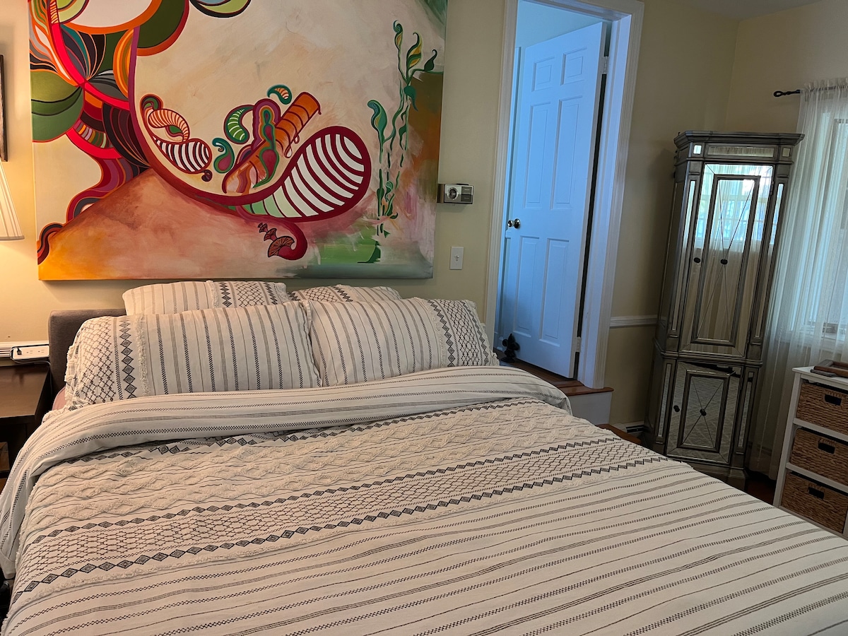 تسجيل الوصول الذاتي/المدخل الخاص. نرحب بالكلاب المدربة في البيت والقطط منزوعة المخالب (لا توجد رسوم إضافية للحيوانات الأليفة). موقف سيارات في الممر لسيارتين. شقة خاصة هادئة على نهر هدسون. القطار إلى مدينة نيويورك (محطة سكاربورو) على بعد 10 دقائق سيرًا على الأقدام عبر الحي التاريخي. أركاديان مول (متجر بقالة، ستاربكس، إلخ) على بعد 7 دقائق سيرًا على الأقدام. الكثير لاستكشافه في المنطقة. إطلالات بانورامية على الأنهار من الداخل والخارج. تلفزيونان. يتم توفير القهوة/التوابل/أساسيات الطهي. 19 دولارًا أمريكيًا للتنظيف مع الحيوانات الأليفة أو بدونها.