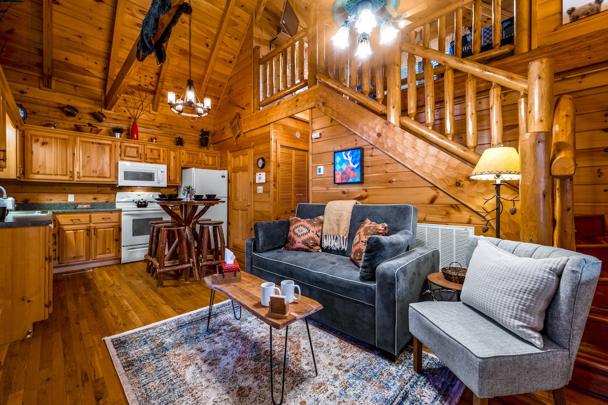 *على بعد ميلين من غاتلينبرغ وبيجون فورج *طاولة حمام سباحة * حوض استحمام ساخن * صندوق موسيقى بلوتوث *دش مطر 28 بوصة لشخصين *مدفأة *سرير بحجم كبير * أريكة نوم بحجم كوين * تلفزيون Roku 55 بوصة * واي فاي سريع *حوض جاكوزي *كيوريج آند دريب * كؤوس وكريمة *الخصوصية والموقع *أرواب * الفراش الفاخر *شواية فحم *شموع بلا لهب *باقة الرومانسية متاحة (40 دولارًا) *تسجيل المغادرة المتأخر 1 مساءً (40 دولارًا) **يرجى ملاحظة أن الكوخ يقع في الجبال. يمكن أن تكون بعض الطرق متعرجة ومنحدرة.