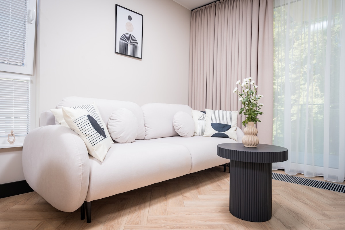 Relax and unwind in this brand new, stylish & calm space surrounded by forest and lakes.Apartment is located in the new development close to nature & only 15 min walk to city centre where you can find Copernicus castle, river walks and many pubs & cafes. You can also enjoy peaceful walks around the lake Krzywe,just at your doorstep or head to lake Ukiel (15 min away)with lots of bars, restaurants, hotels, beaches, water sports & many children’s attractions. Train station is only 10 min away.