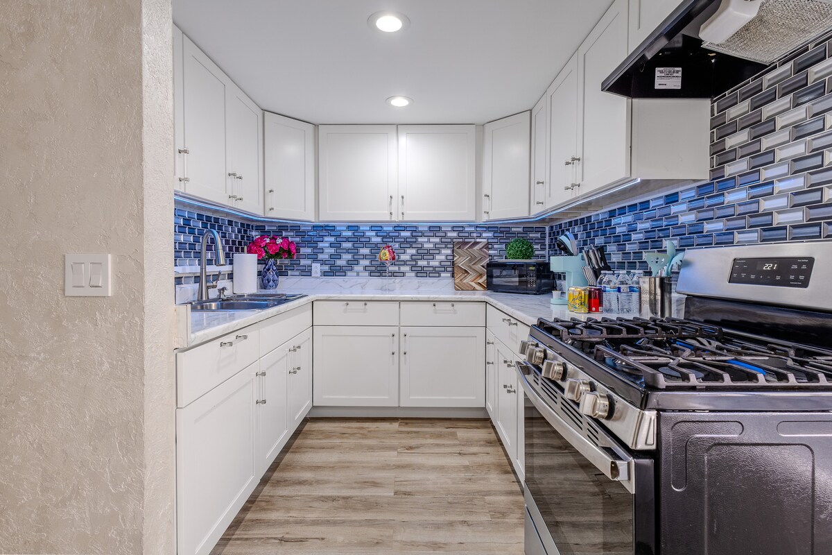 توفر هذه الشقة المصممة بشكل جميل من 4 غرف نوم للمجموعات والعائلات مكانًا ممتعًا وممتعًا. هل تحتاج إلى المزيد من الغرف ؟ فكر في حجز غرفة أخرى في هذا الموقع! أرسل لنا رسالة للحصول على مزيد من التفاصيل. مسافة القيادة التقريبية إلى هذه المواقع: وسط مدينة لوس أنجلوس: <10 أميال استوديوهات يونيفرسال: 20 ميلاً مطار لوس أنجلوس الدولي (لوس أنجلوس): 25 ميلاً شاطئ سانتا مونيكا: 25 ميل ديزني لاند: 30 ميلاً