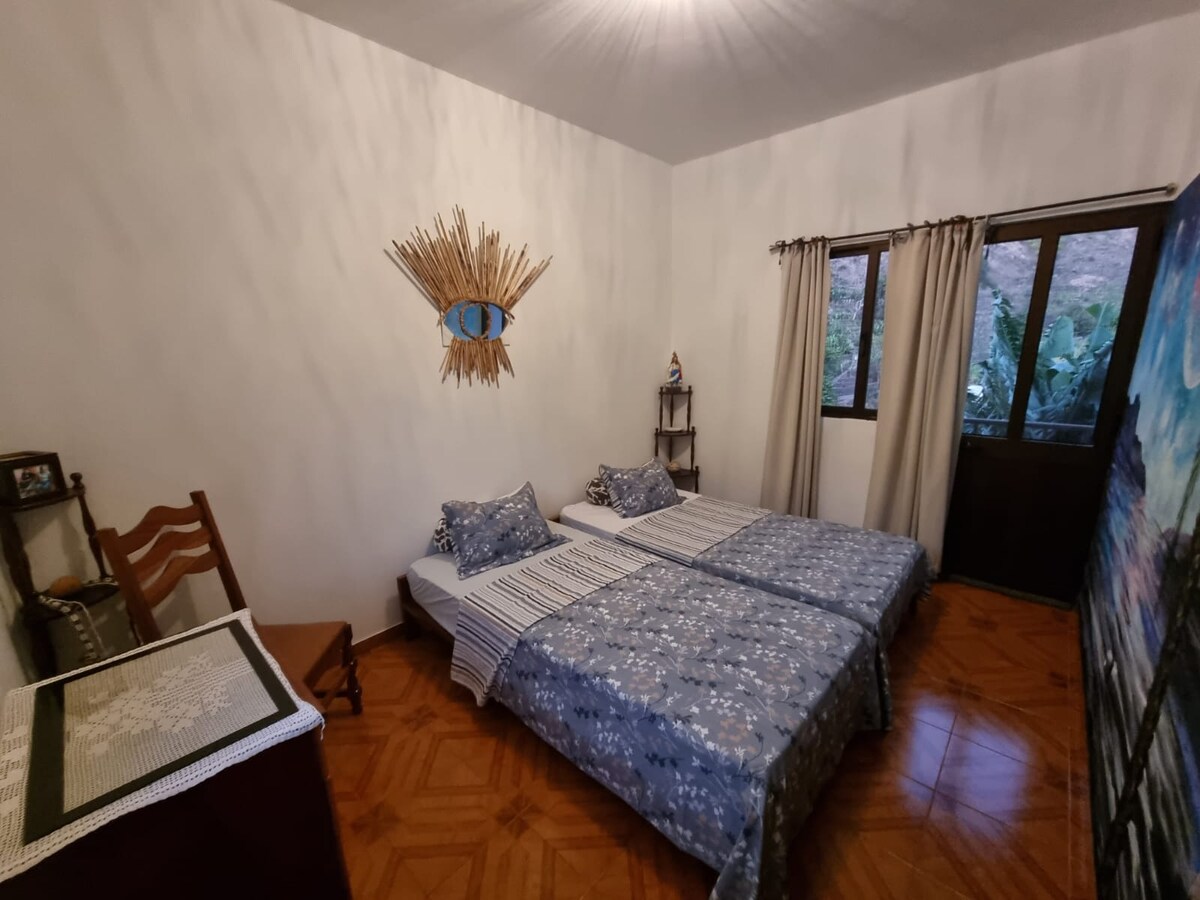 Ce logement paisible au milieu de la nature offre un séjour détente pour toute la famille, entre amis, couples ou groupe d'amis! La propriété est située dans la vallée de Paúl, dont la rivière et ses deux espaces rien que pour vous! Le logement principal tout équipé plus la maisonette en contre bas qui fait chambre avec un lit double et un lit simple avec sa salle de bain privée.