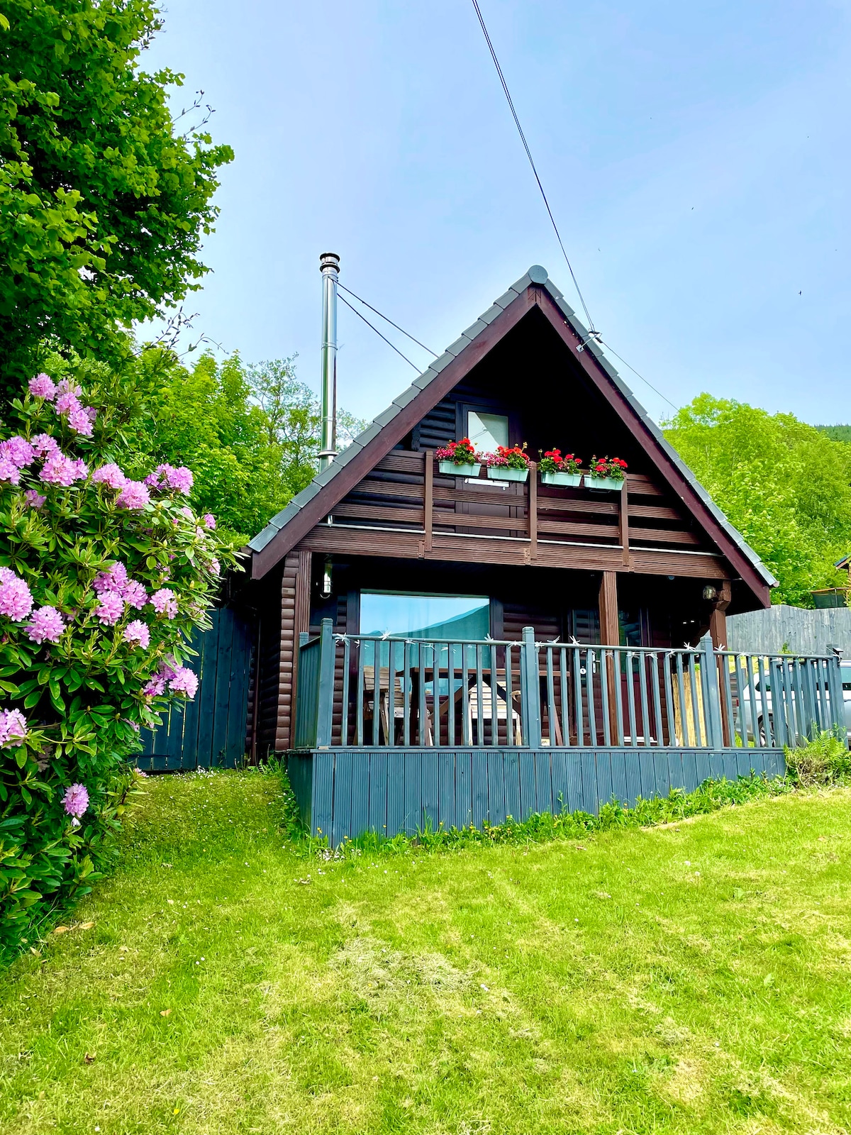 Log Cabin in Strathyre available on a weekly basis. 4 Berth A-Frame Swiss Style Log Cabin in the National Park (1 double and second bedroom with 2 singles). Wood Burning Stove. Full fire and CO alarms. Charming Village with Post Office, shop and Pub all within 3 minutes walk. Wonderful forest walks and fishing river literally 10 yards from the Cabin. One dog welcome, smokers not. Fast Fibre WiFi but poor mobile connections within the cabin however OK in the village.