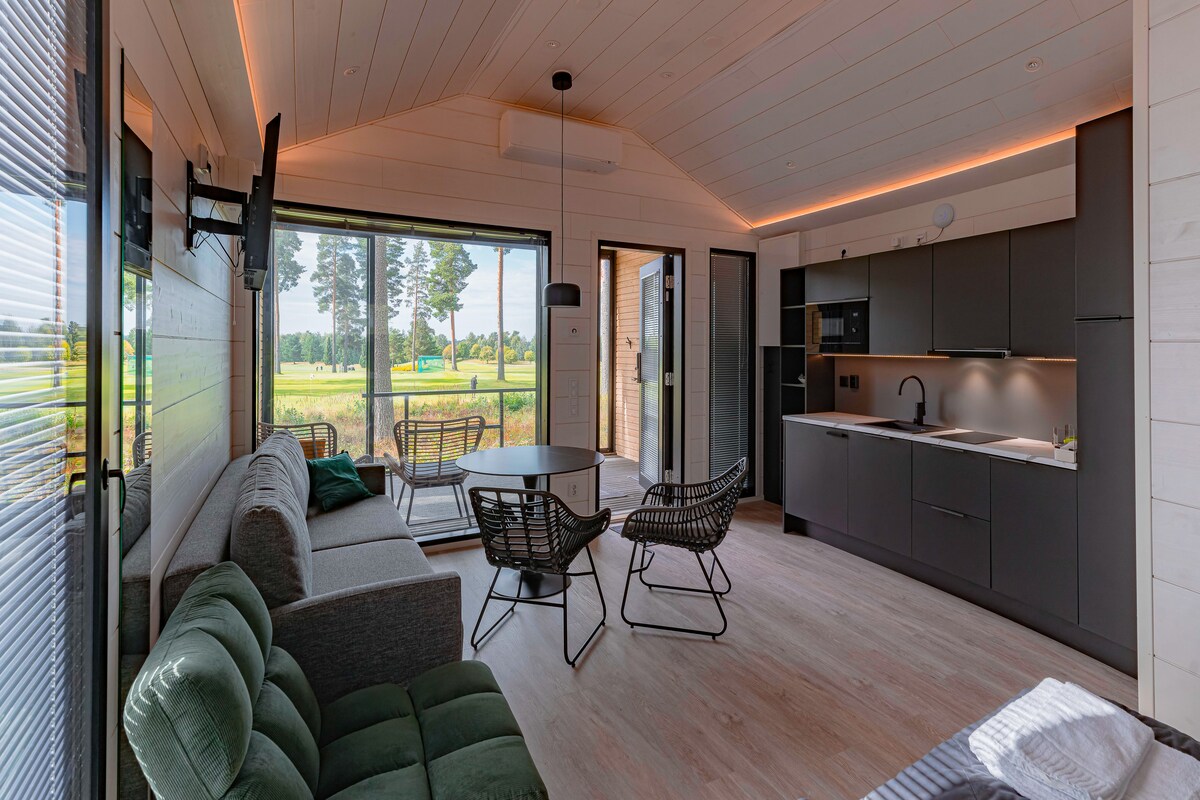 الاستمتاع بالكوخ في قرية الأكواخ، بالقرب من ملعب الجولف