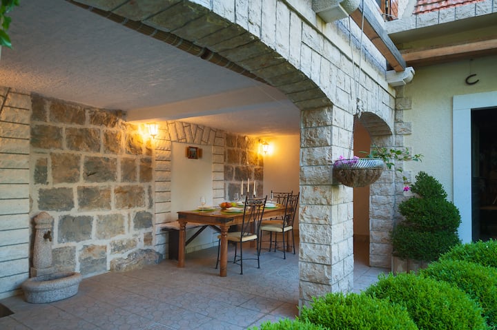 في رحلاتي، زرت مصر وتونس واليونان وإيطاليا وسلوفينيا وألمانيا ... لقد قابلت العديد من الأشخاص الرائعين والعديد من الثقافات المختلفة... ثم كانت لدي أنا وزوجي فكرة أننا نحن المنزل الذي نشأ فيه زوجي في إعادة البناء وإعطائك مكانًا للاسترخاء والعقل الذي يمكنك الاستمتاع به أثناء اكتشاف الساحل الدلماسي الجميل.