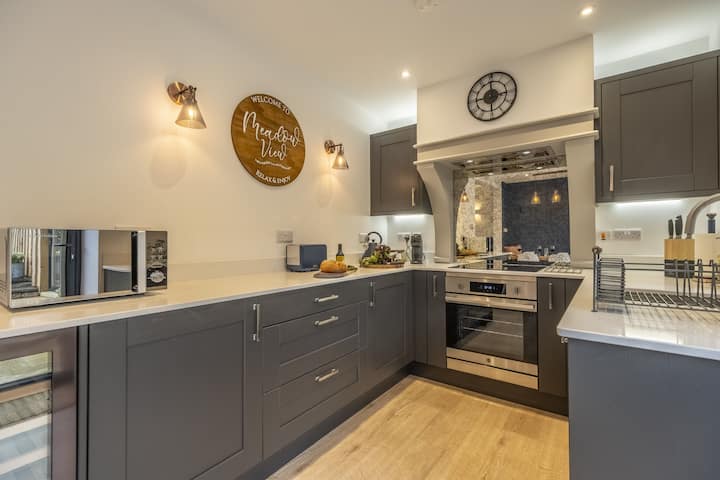 يعد الطابق الأرضي من ميدو فيو مثاليًا للاسترخاء والاستمتاع بصحبة بعضنا البعض مع تصميم مفتوح يوفر مساحة اجتماعية رائعة للطهي والترفيه، أو ببساطة الاسترخاء بجانب موقد حرق الخشب بعد يوم تقضيه في استكشاف منطقة بيكة. تتميز غرفة الجلوس بإطلالات بعيدة المدى عبر وادي ديربيشاير، حتى تتمكن من الاسترخاء أمام موقد حرق الخشب والاستمتاع بالمناظر، أو مشاهدة فيلمك المفضل على التلفزيون الذكي من الأريكة المريحة، بينما يخلق موقد حرق الخشب الصاخب جوًا دافئًا مثاليًا في أمسيات الشتاء الباردة. أو اصطحب نفسك إلى غرفة الحديقة حيث توفر المقاعد الإضافية وتلفزيون آخر فرصة لبعض الوقت الهادئ للاستمتاع بالحديقة من الأبواب ثنائية الطي، أو مساحة مثالية للمراهقين للقيام بأشياءهم الخاصة. المطبخ مجهز تجهيزًا جيدًا حتى لأكثر الطهاة حرصًا ويمتد إلى منطقة تناول الطعام، مما يوفر مقاعد مريحة لتلك الوجبات العائلية الخاصة.