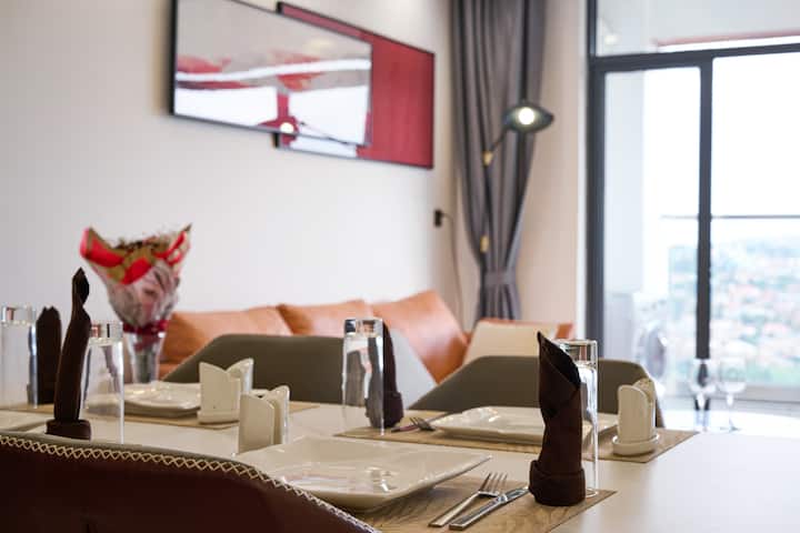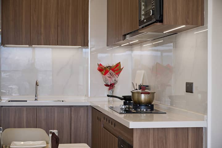 شقة بإطلالة على المدينة مكونة من ثلاث غرف نوم مع شرفة