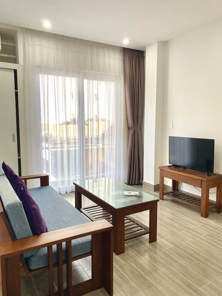 شقة بشرفة على الشاطئ