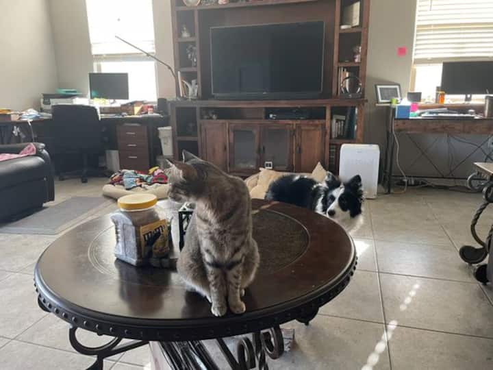 أنا ماري. أعمل من البيت أنا متاحة إذا احتجت أي شيء. كان لدينا غرف للإيجار في هاواي لفترة طويلة، ولا تزال مكالمات هاواي تتميز بالخبرة الكبيرة مع شخصيات مختلفة تشارك بيتنا. نحن مرحبون جدًا. نحن نقدم الاحترام والتهذيب. فقط رد الجميل. نحن مرتاحون جدًا للمناطق التي نشاركها وخصوصيتك في المناطق الخاصة. البيت كبير ونراقب عدد الأشخاص في البيت ومشاركة الحمام.